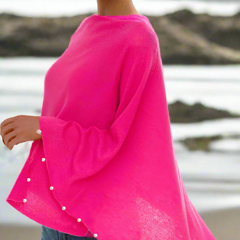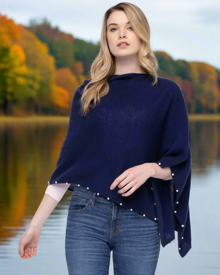 We took the signature 100% Cashmere Dress Topper Poncho and added a pearl treatment around the hem line, as well as the back seam. Pair with a dress for date night or tie it into a pearl trim scarf. Items from this Collection, if not in stock can possibly be ordered. These special orders are non-refundable. No Cancellations. For questions regarding special orders please call 239-434-1885.