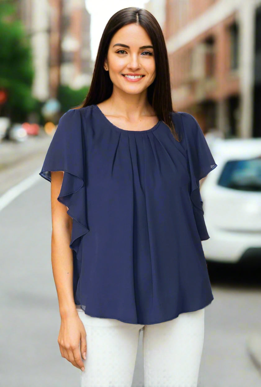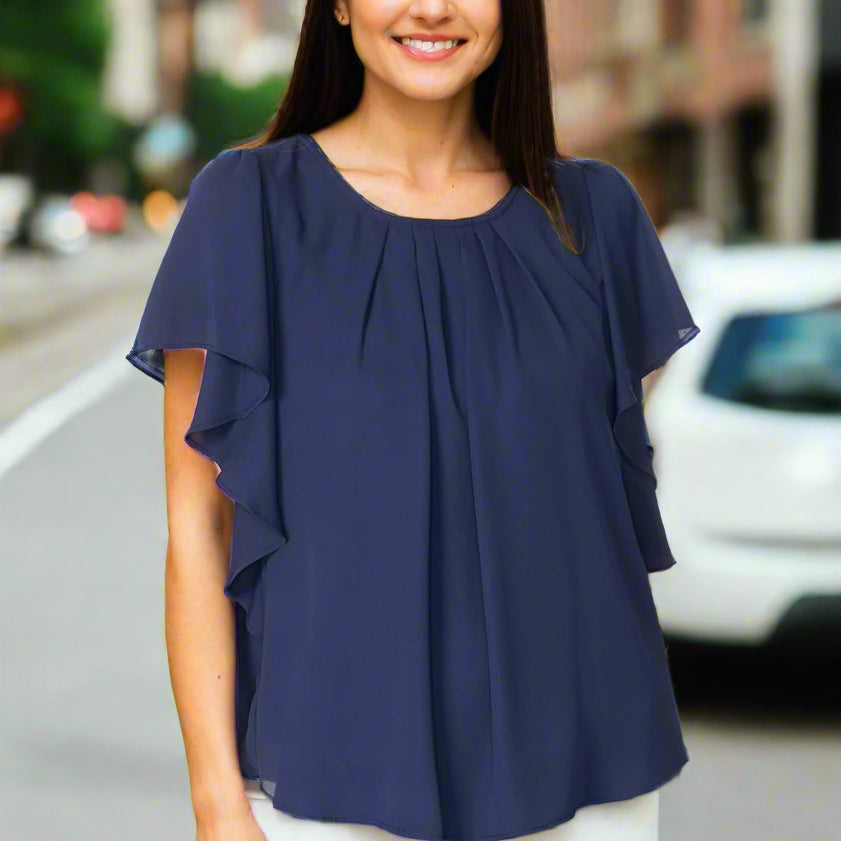 Double Layer Georgette Pleat Front Cascade Sleeve "Go out Top" in Pink or Navy