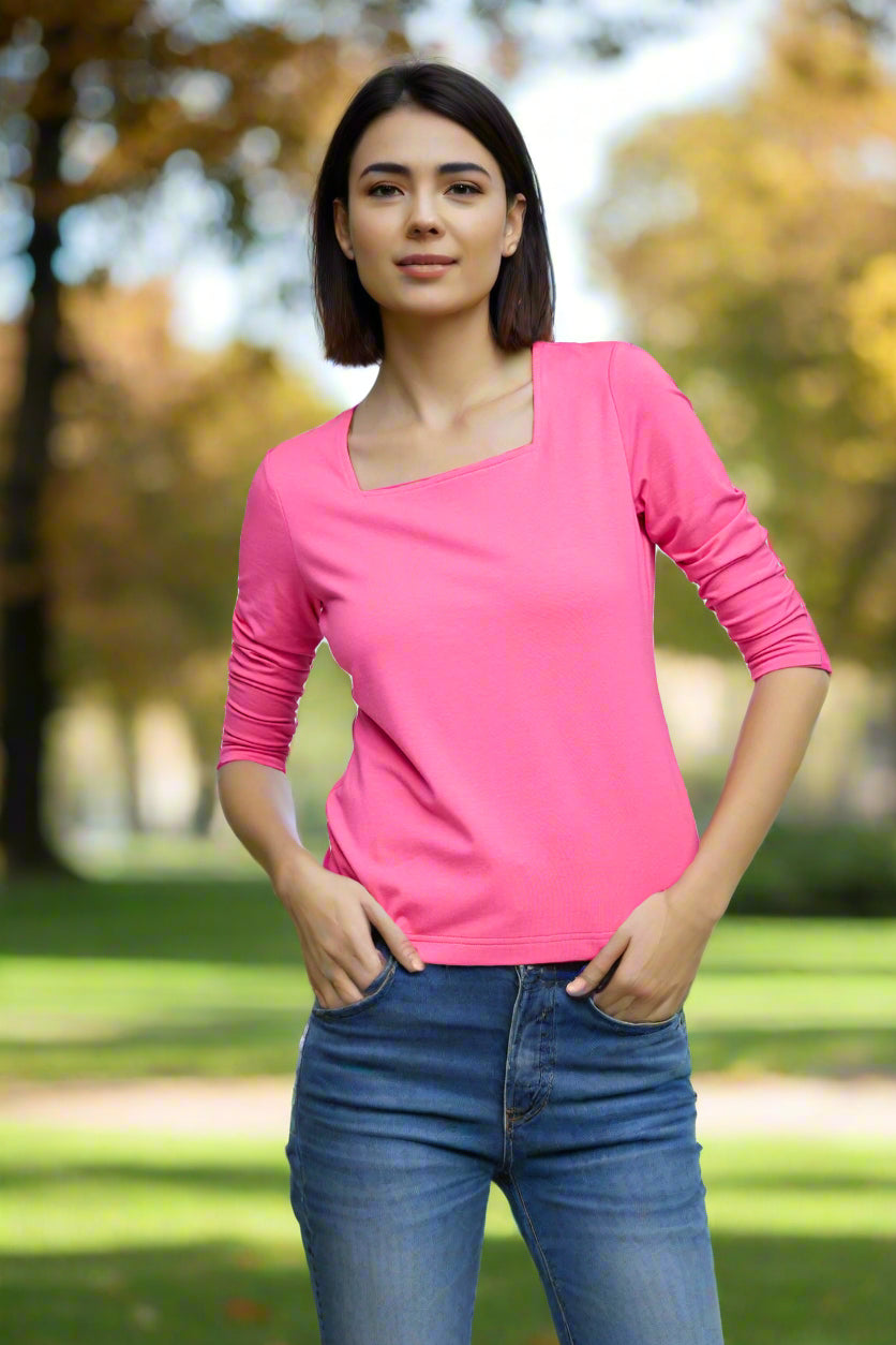 HInson Wu Tammy 3/4 Sleeve Square Neck Knit Top