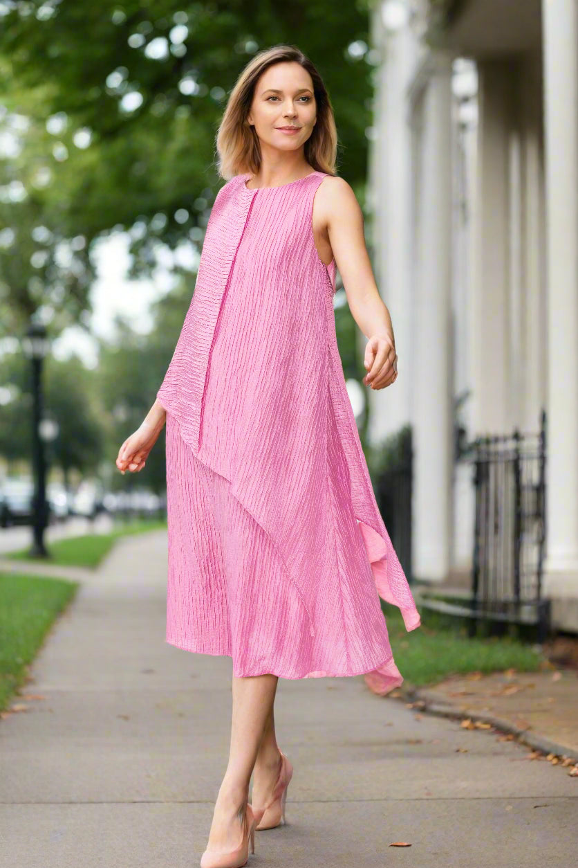 Sleeveless Crinkle Dress with Asymmetrical Layer