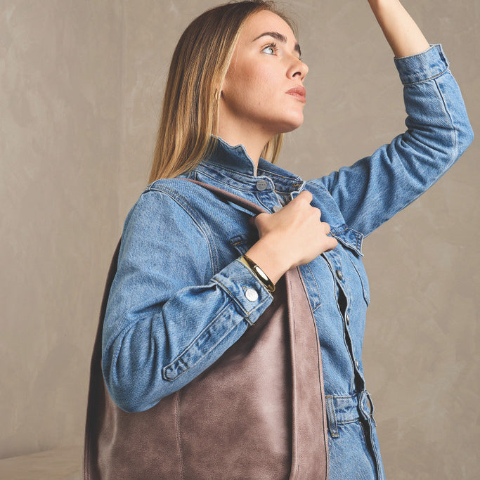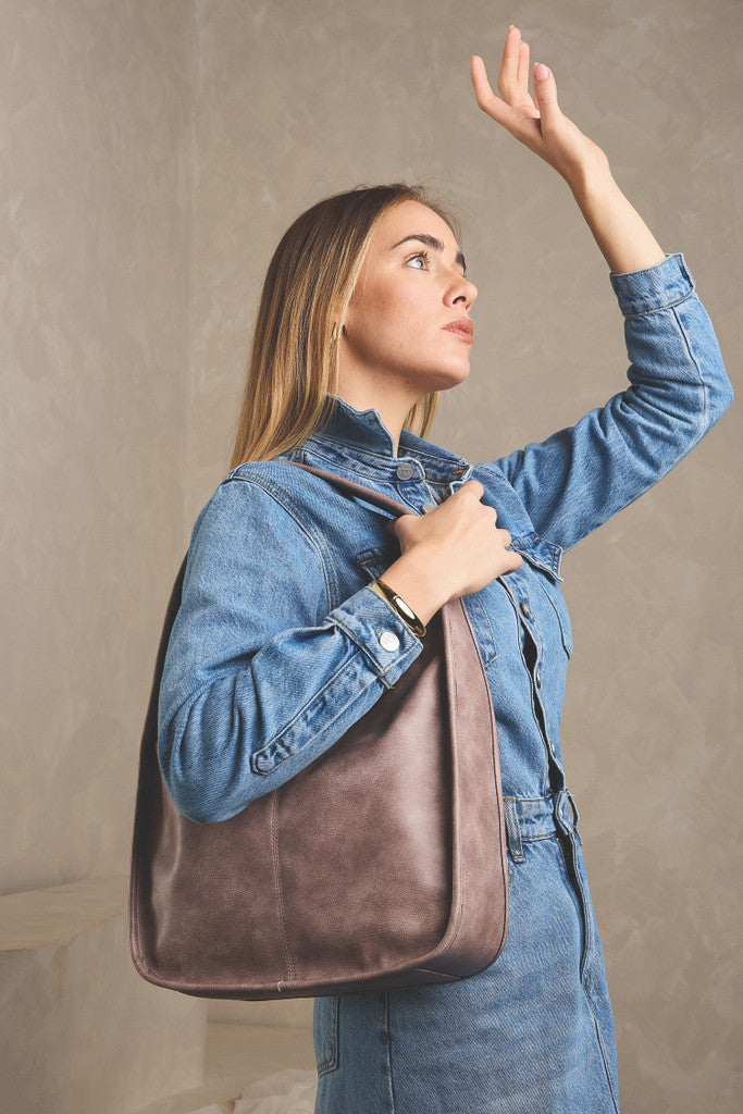 Beautiful Vegan leather shoulder bag; zipper closure, very roomy inside and feels soft to touch, the color is fabulous in stonewashed colors.