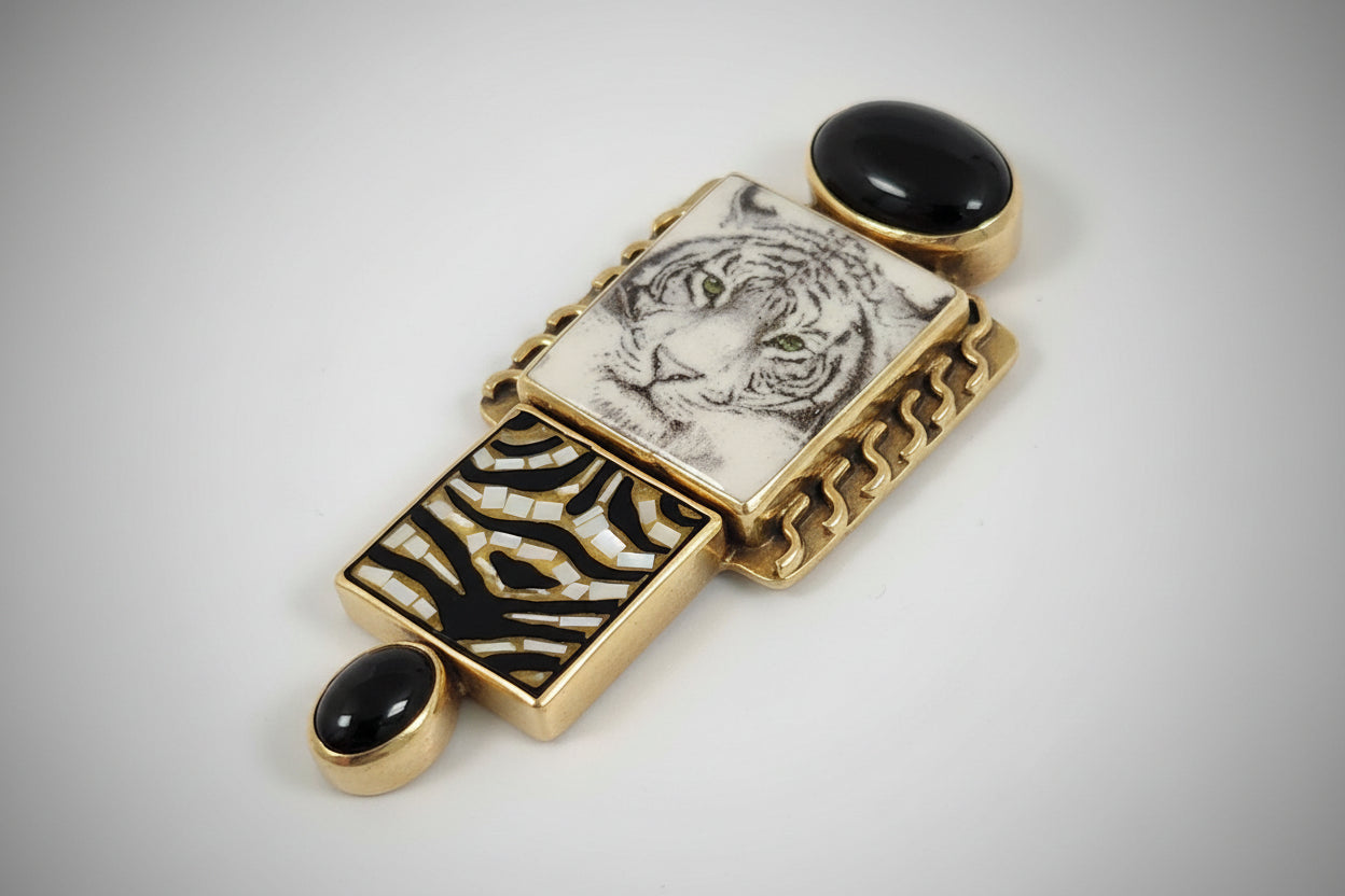 Amy Kahn Russell Black Tiger Onyx Necklace Pendant/Pin