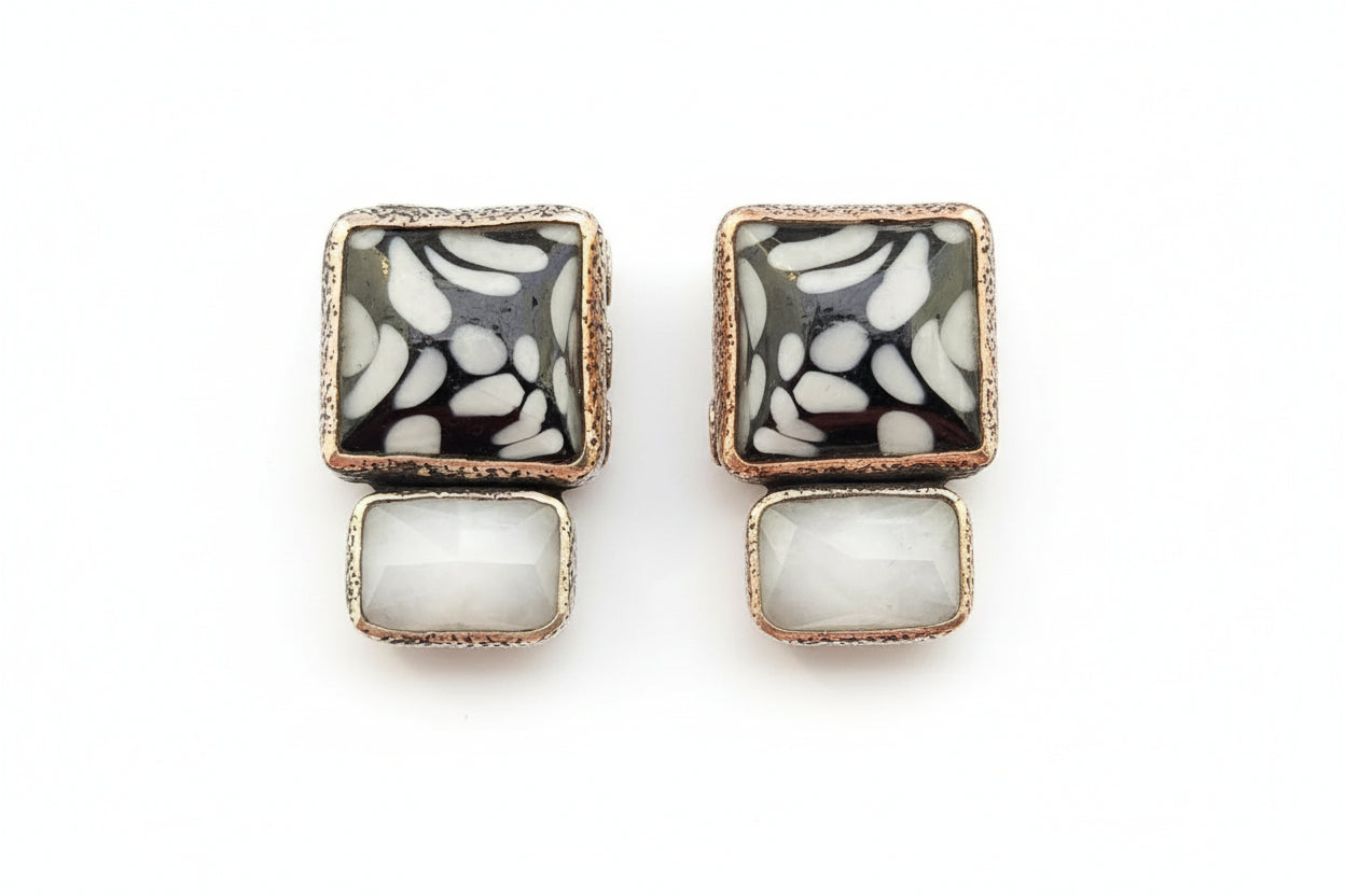 Amy Kahn Russell Pearl and Onyx Pierced Earring
