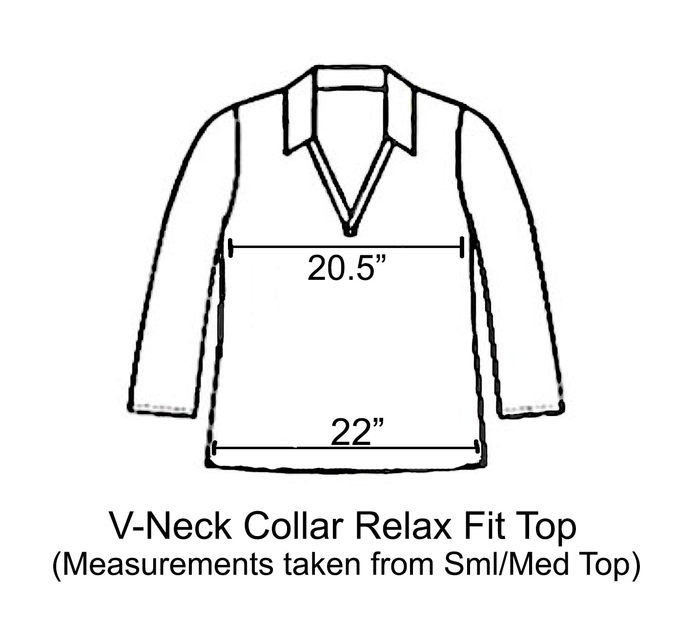 It's time to push up those sleeves and get the party started with the V-Neck Collar Relaxed Fit top. Available in Small/Medium and Large/XLrg.