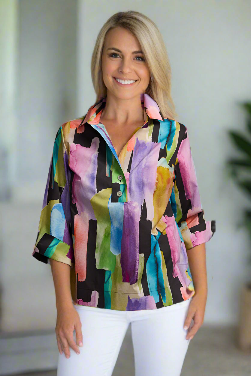 Hinson Wu Aileen Abstract Watercolor Blouse