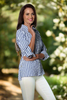Button Down Blouse with Side Button Details in Luxurious Panama Stripe Fabric