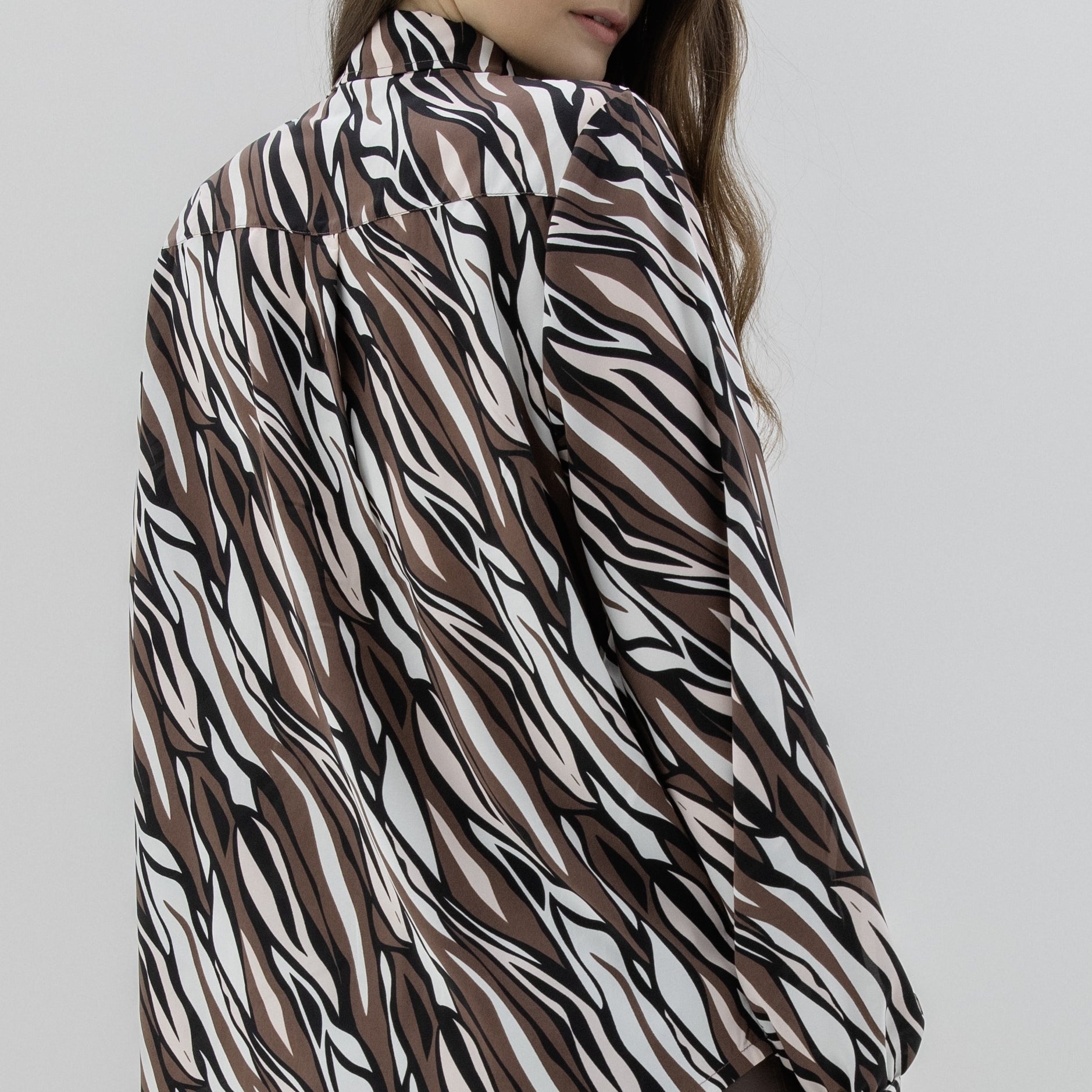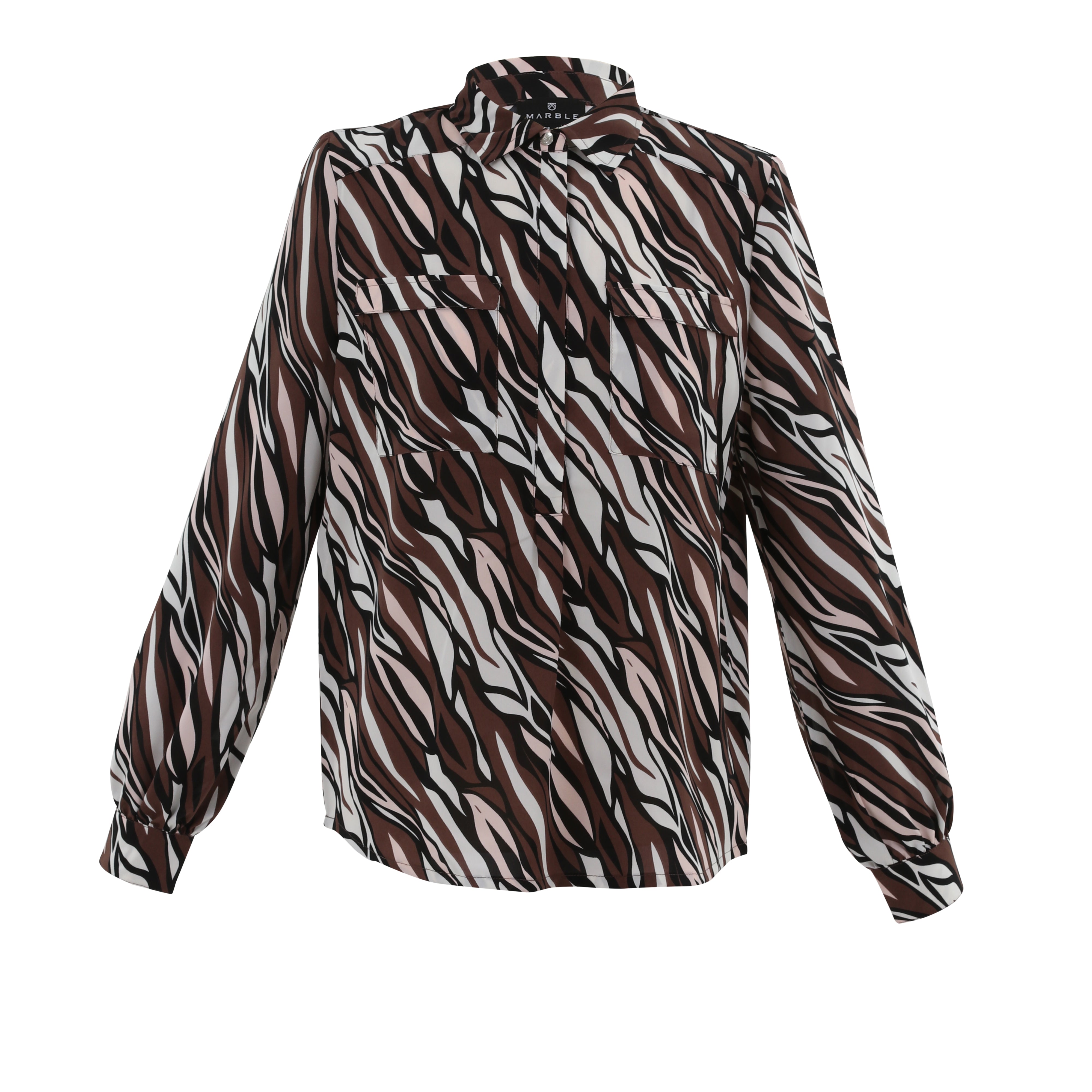 Marble Button Down LS Blouse in Brown/Pink Multi Print