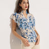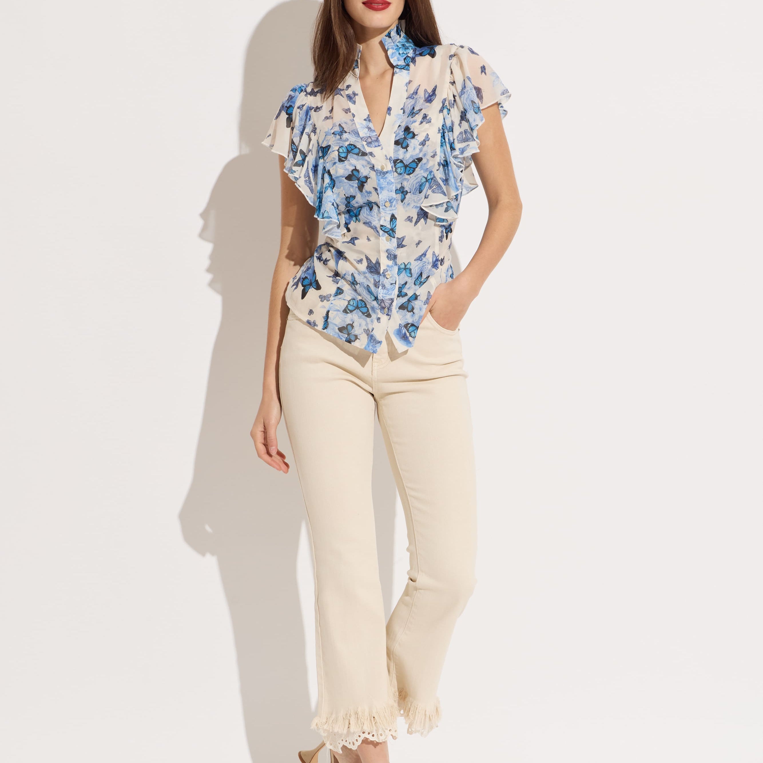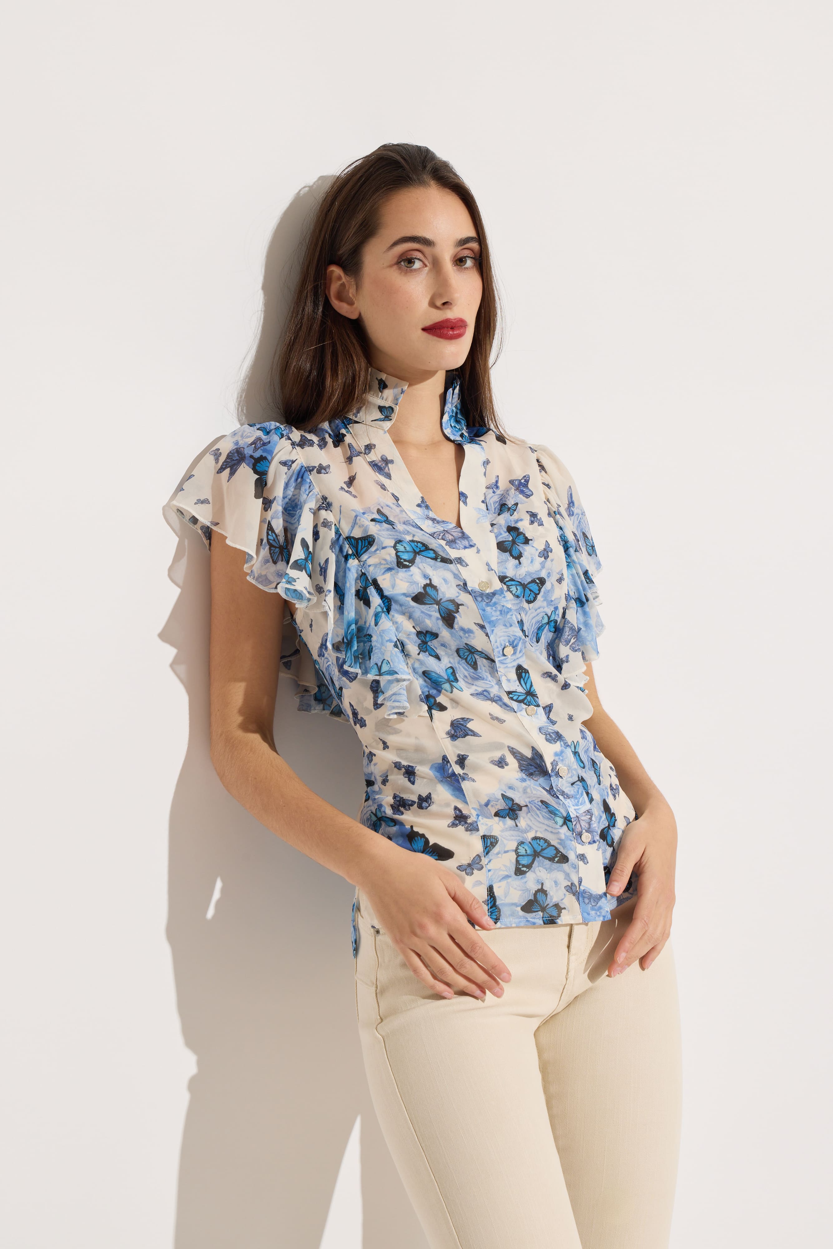 Oo La La 2 Piece Flutter Sleeve Blue Butterfly Blouse
