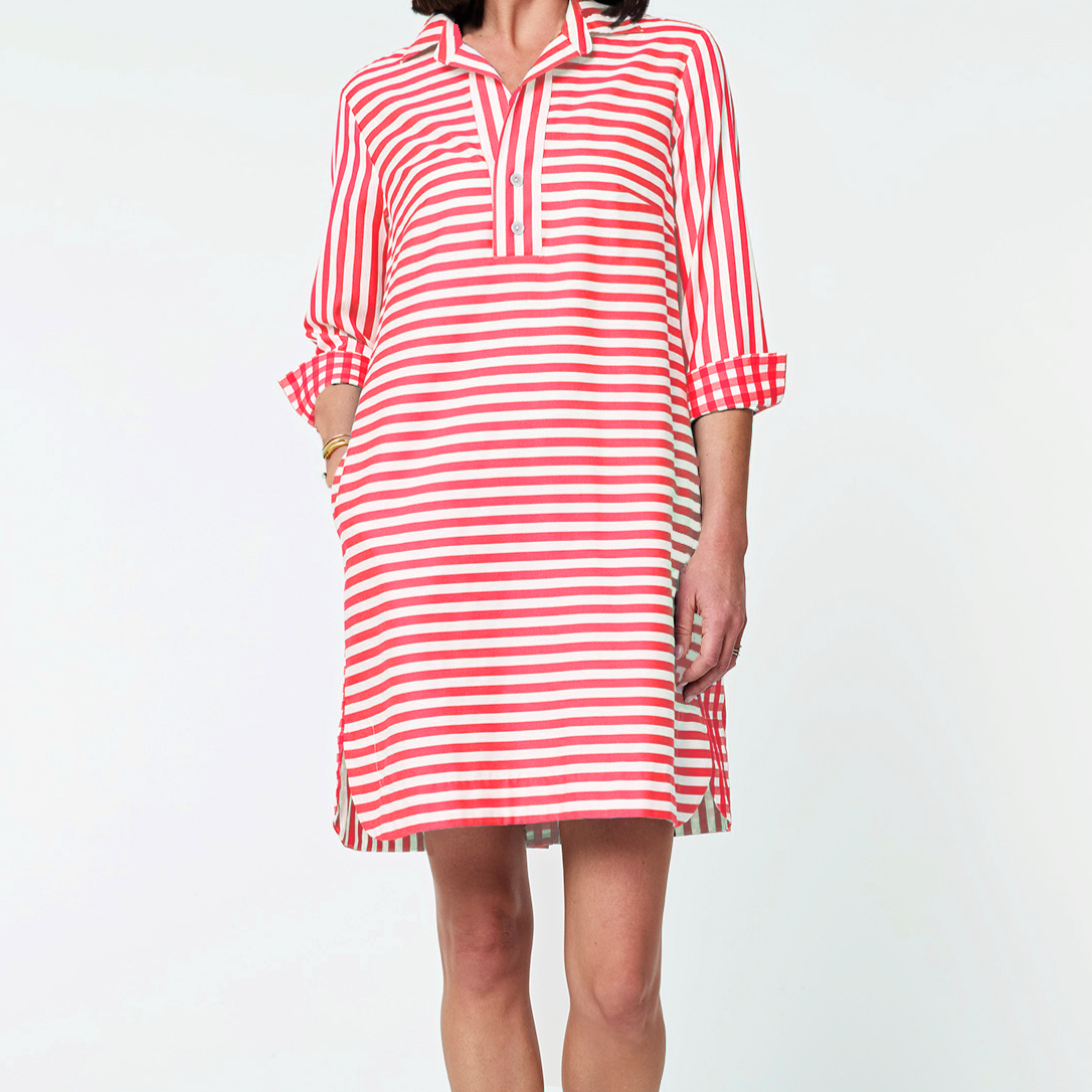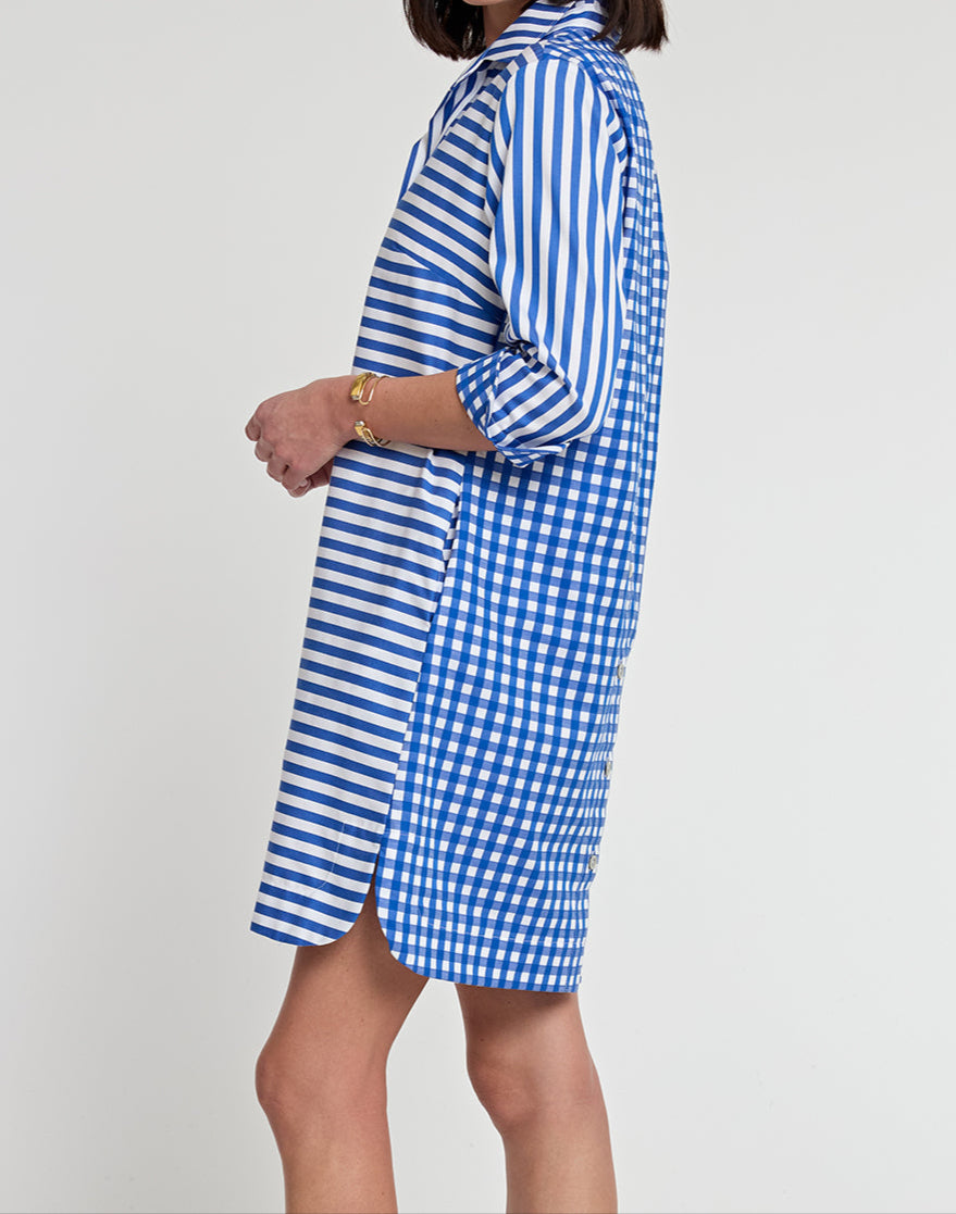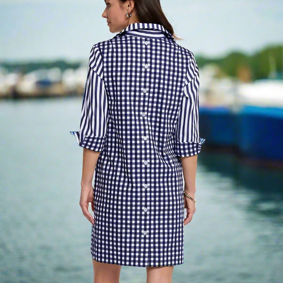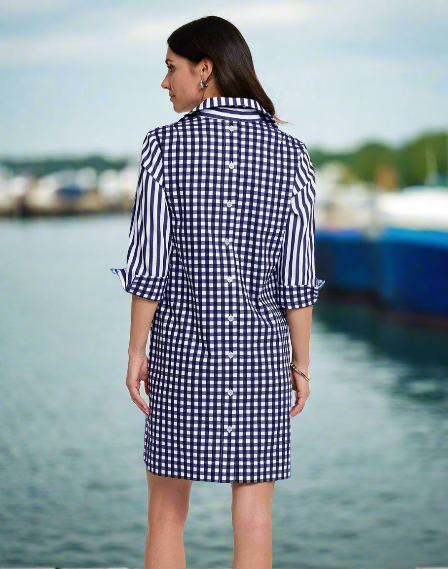 Hinson Wu Aileen 3/4 Sleeve Gingham and Stripe Dress