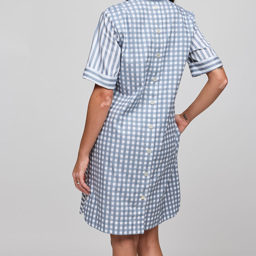 Hinson Wu Aileen Short Sleeve Gingham and Stripe Dress