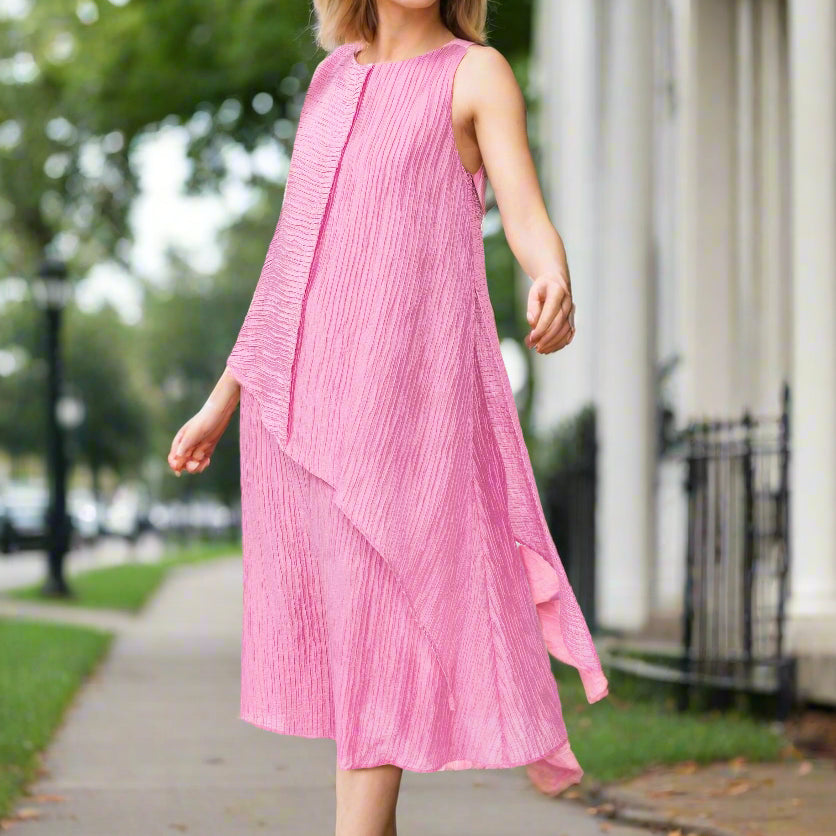 Sleeveless Crinkle Dress with Asymmetrical Layer