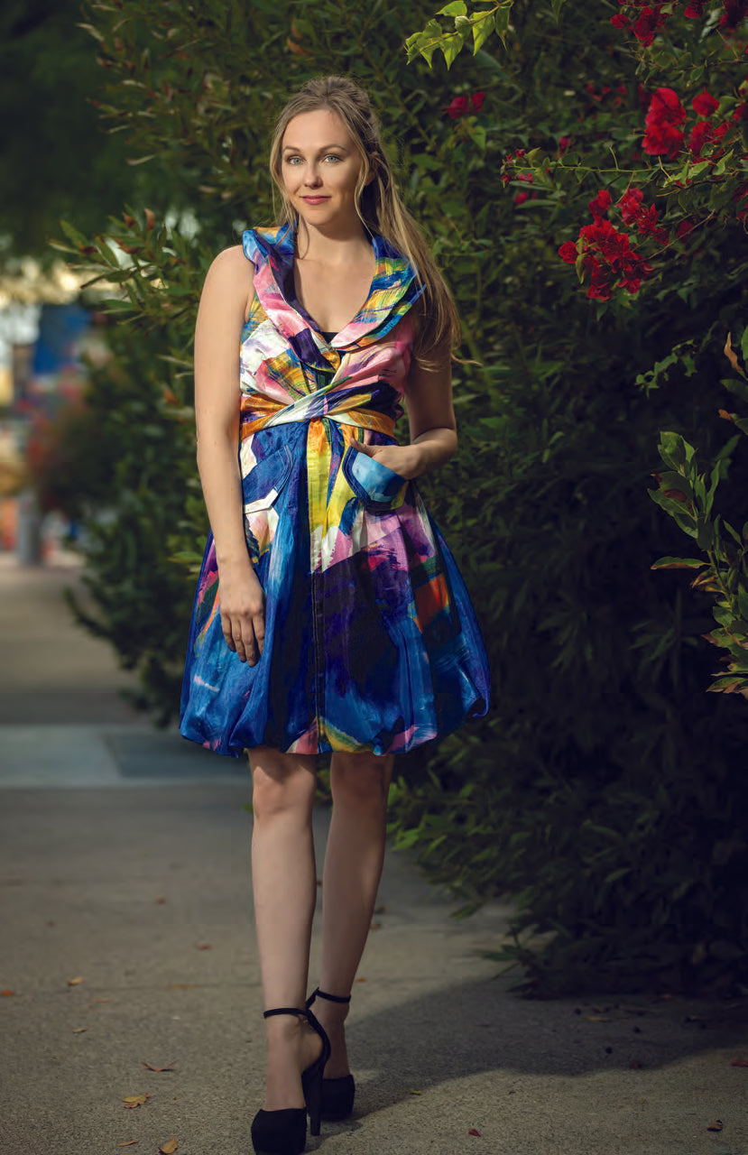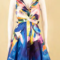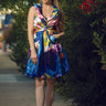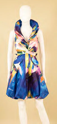 Samuel Dong Cobalt Pink Picasso Print Ruffle Collar Dress