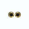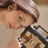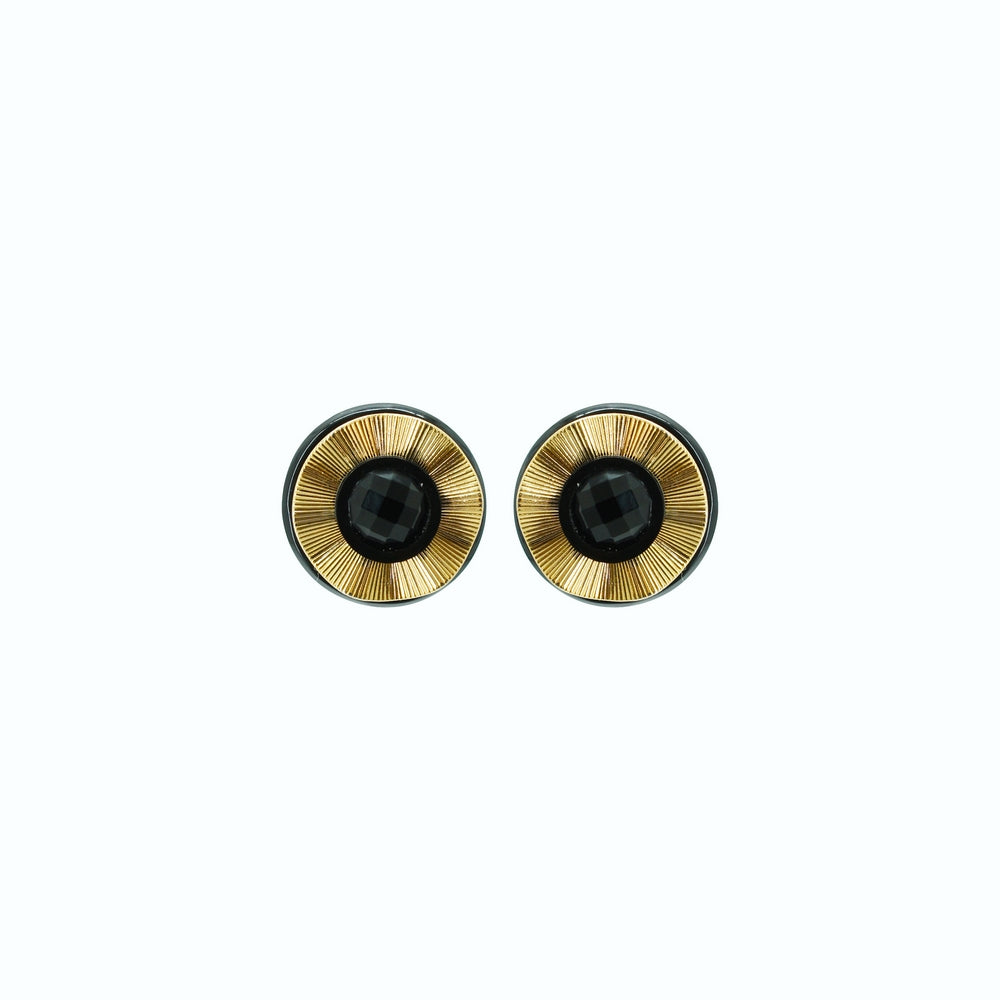 Earring made of acrylic, with Zamak ornament, with glass stone application, with brass earring pin, metals with gold finish. Handmade by Brazilian artisans.