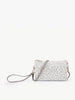 The perfect compact bag, you can carry this bag three ways; crossbody, shoulder or wristlet, made with a vegan leather, it has a zipper closure and comes in many assorted colors.