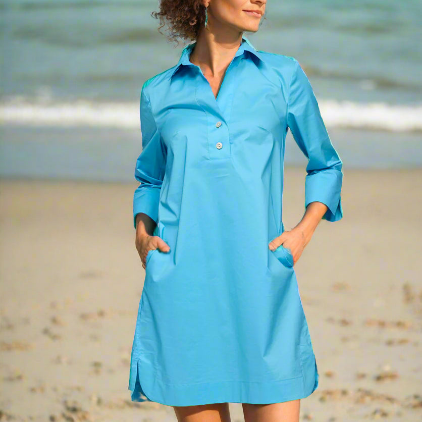 3/4 Sleeve Charlotte Dress- Polished Stretch Cotton Solids