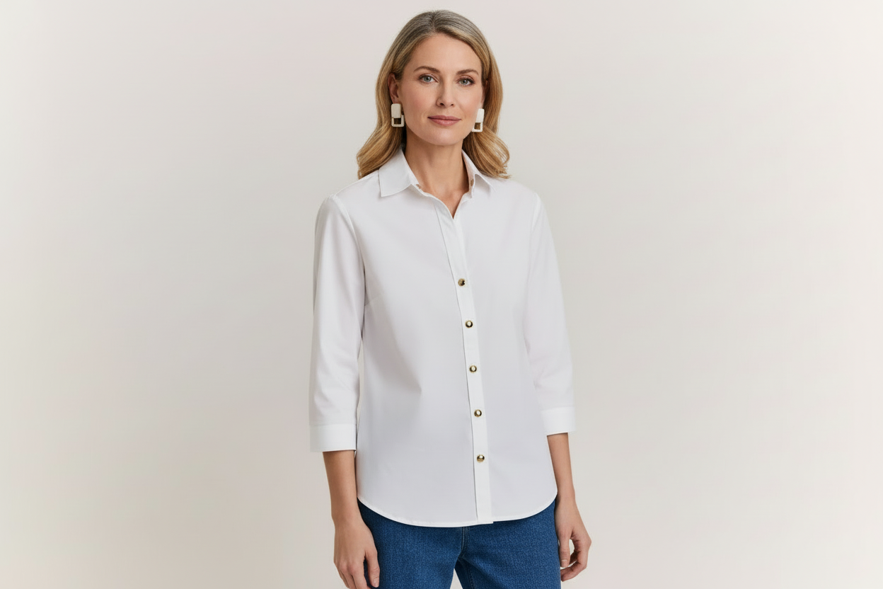 Hinson Wu Clarice 3/4 Sleeve Fitted Blouse with Gold Buttons