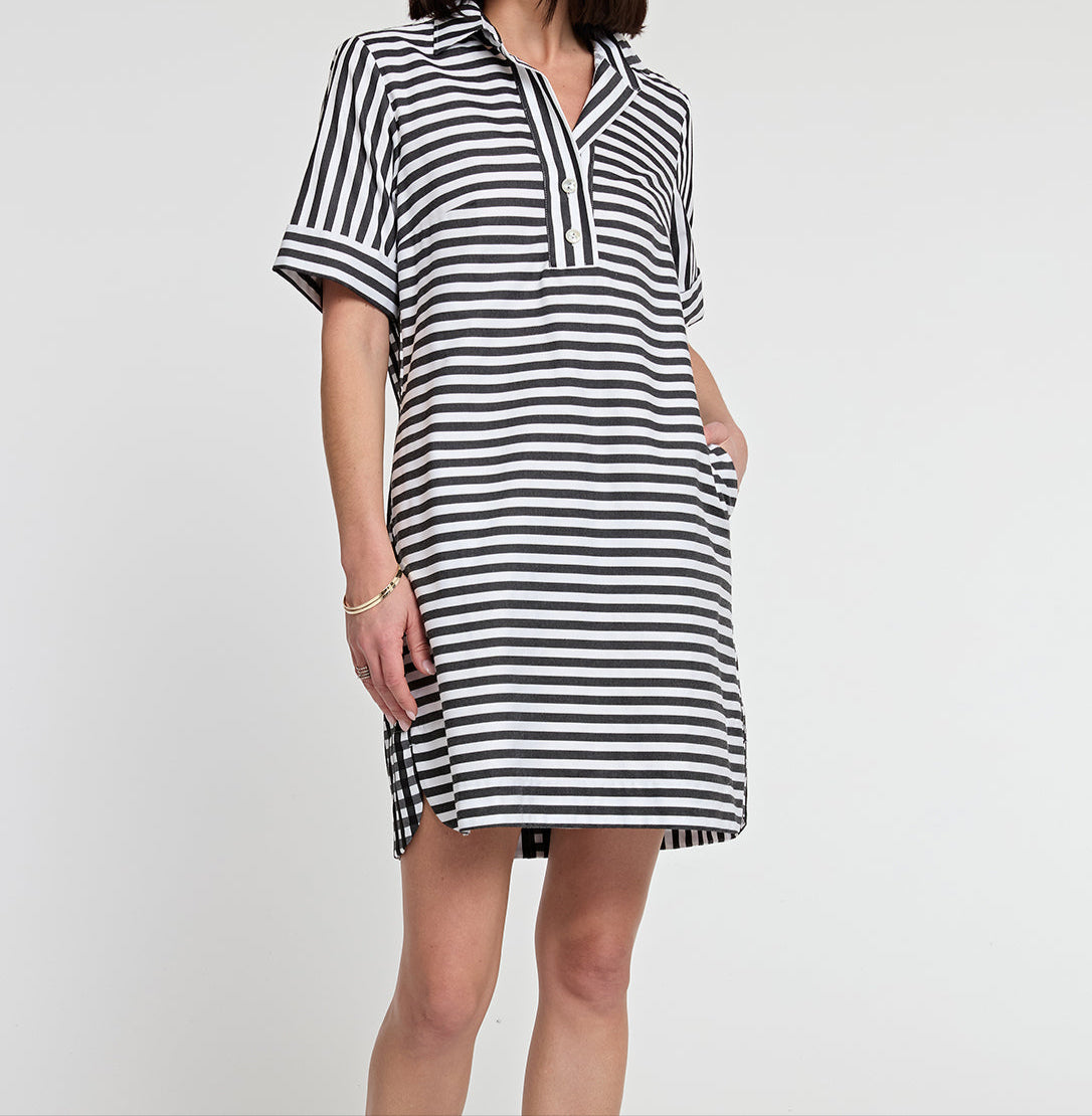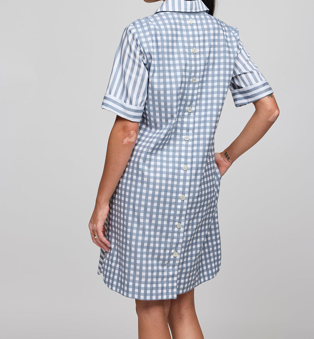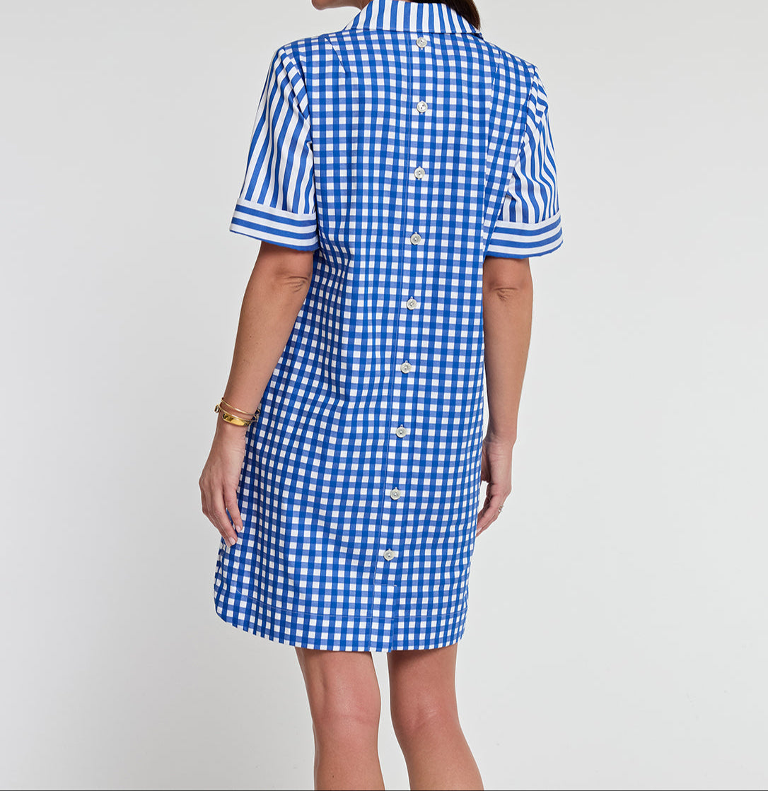 Hinson Wu Aileen Short Sleeve Gingham and Stripe Dress
