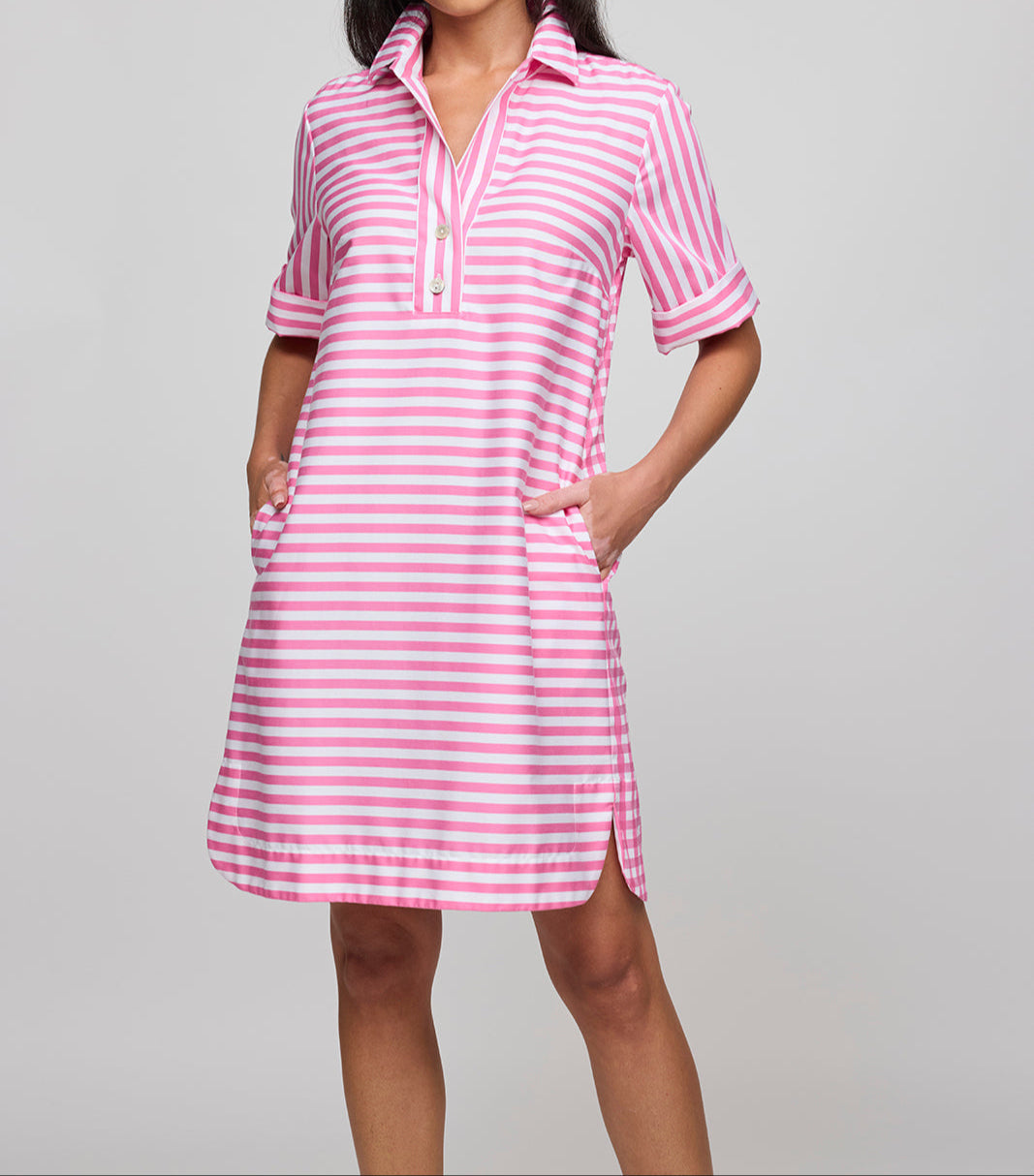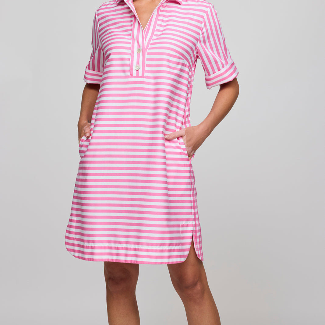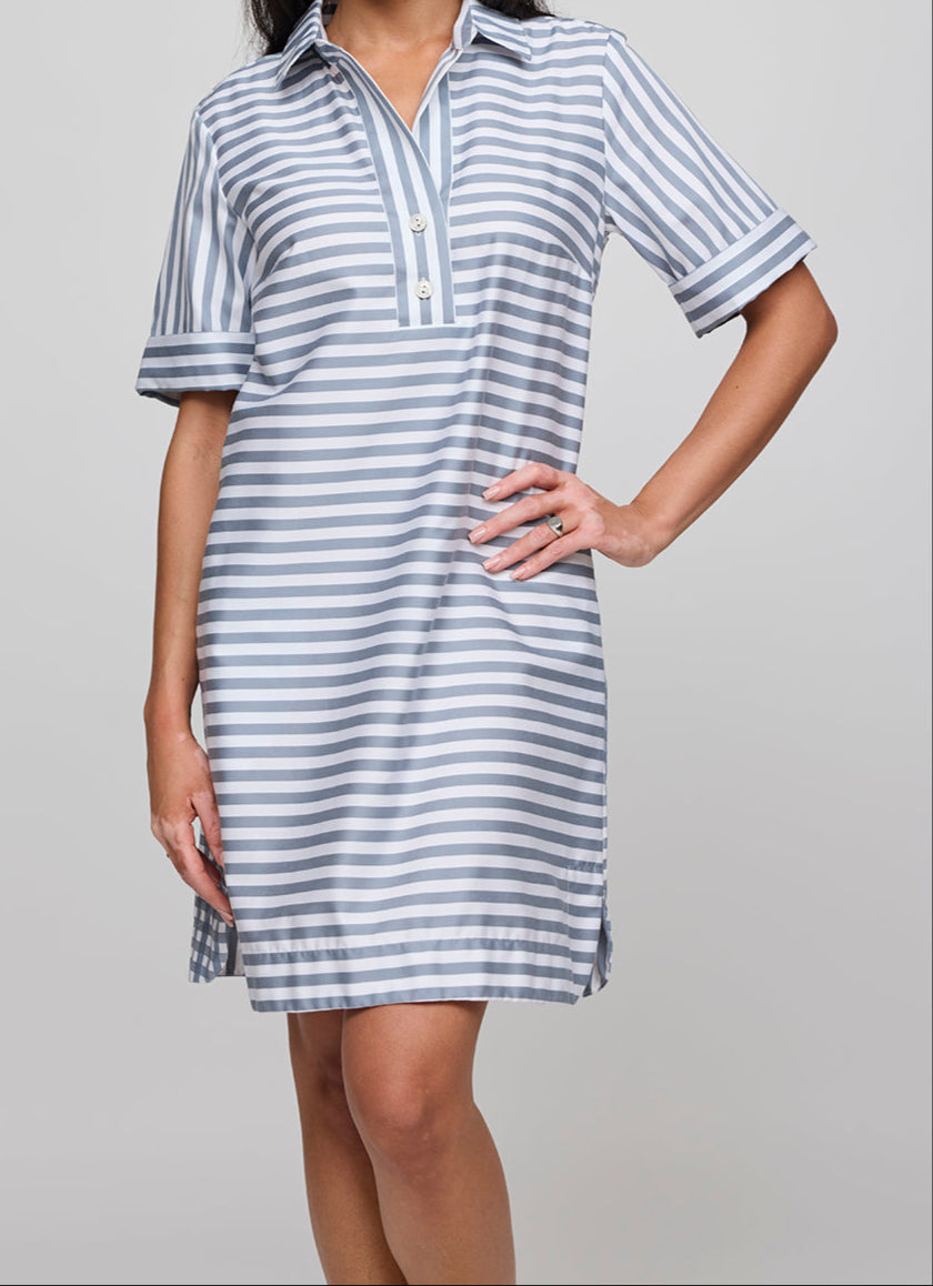 Hinson Wu Aileen Short Sleeve Gingham and Stripe Dress