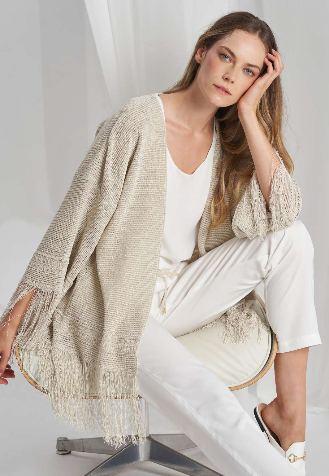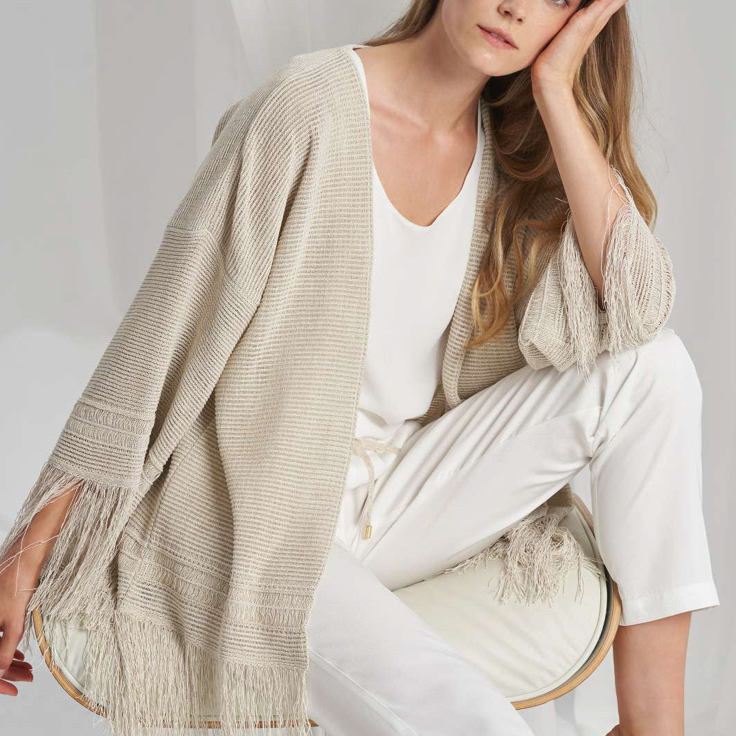 Tricot Chic Long Cardy with Fringe