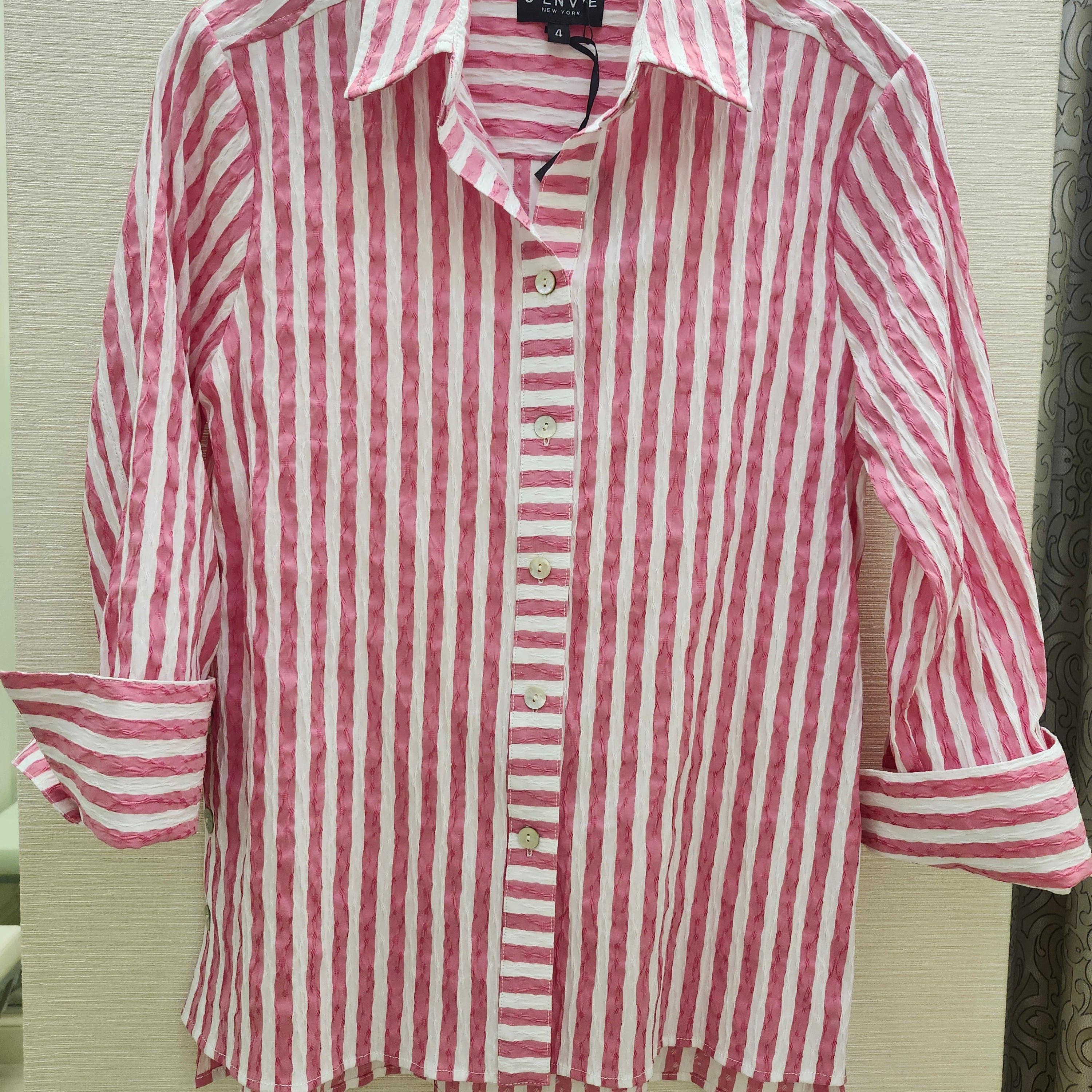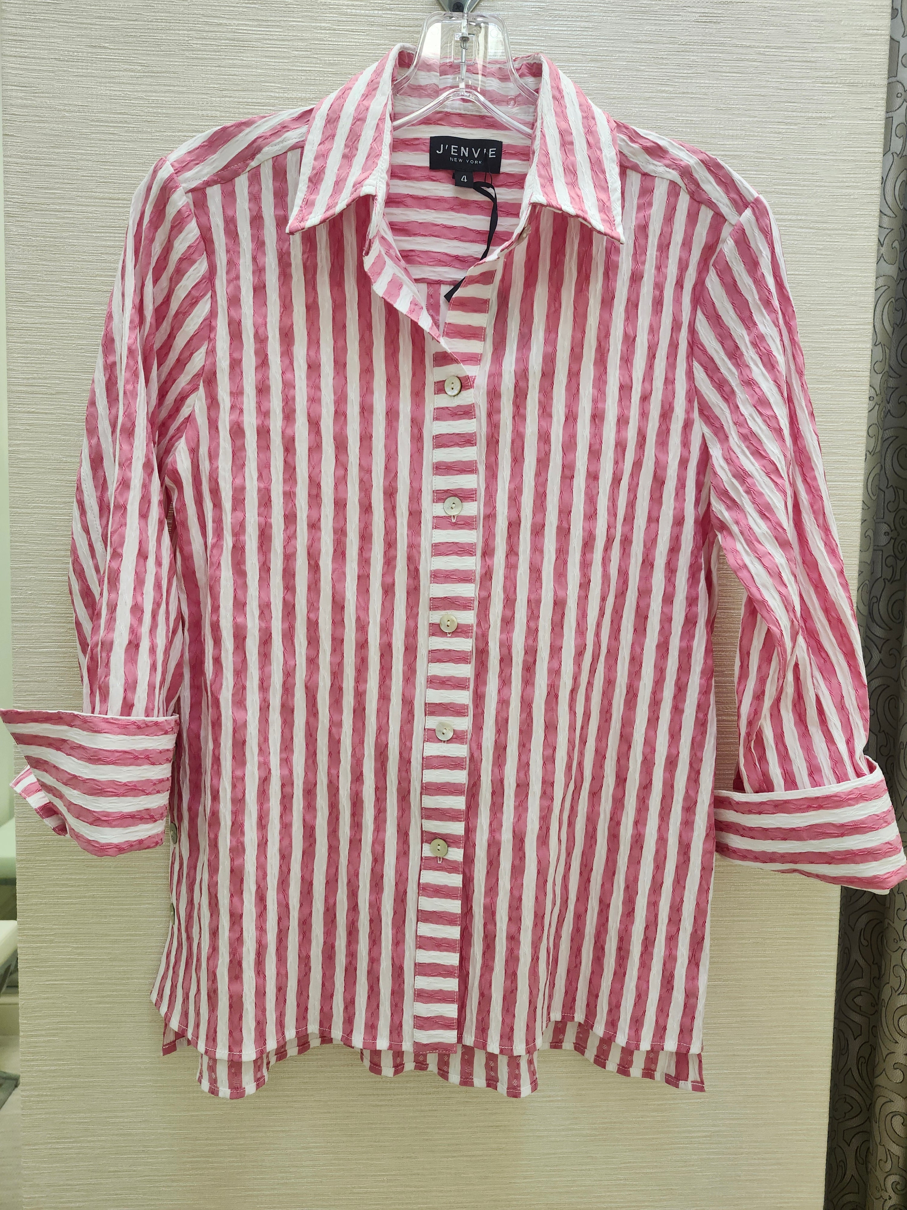 Button Down Blouse with Side Button Details in Luxurious Panama Stripe Fabric