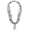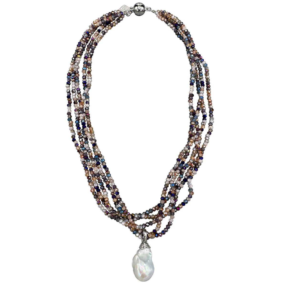 5-Strand Mix Iridescent Crystal Necklace w/ Detachable White Freshwater Cultured Baroque Wild Pearl Drop on Silver Plate Bale w/ Rhodium Plated Stainless Magnetic Closure 18".