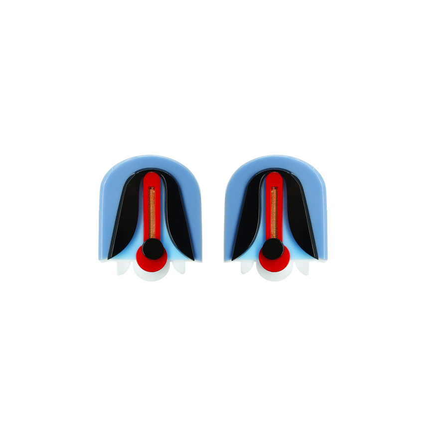 Earring made of acrylic, with application of glass rhinestones, with stainless steel pin.