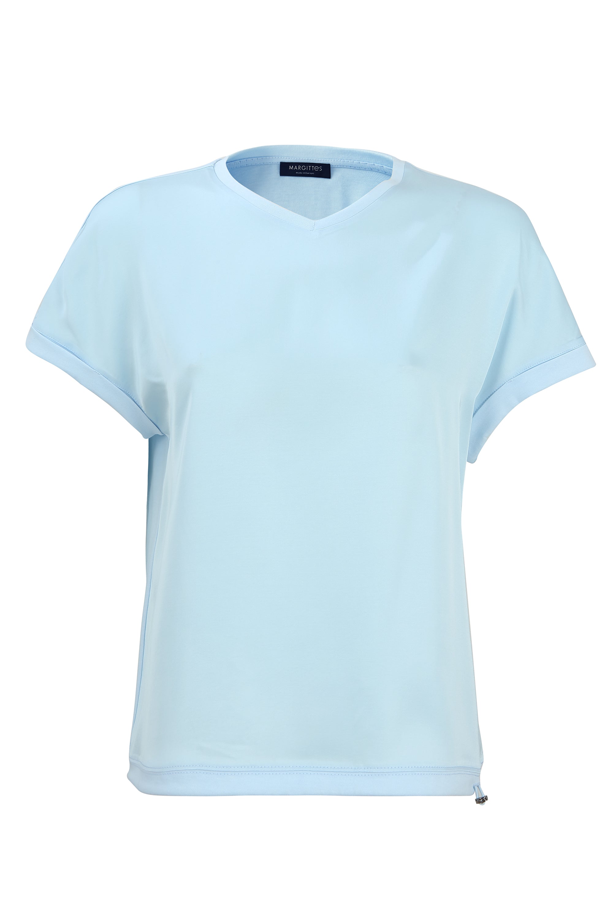 Margittes Cap Sleeve V-neck Top with Sateen Front