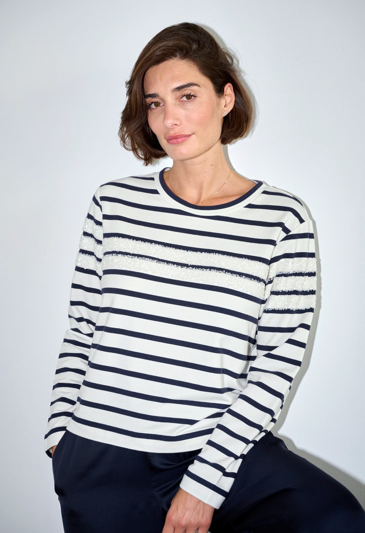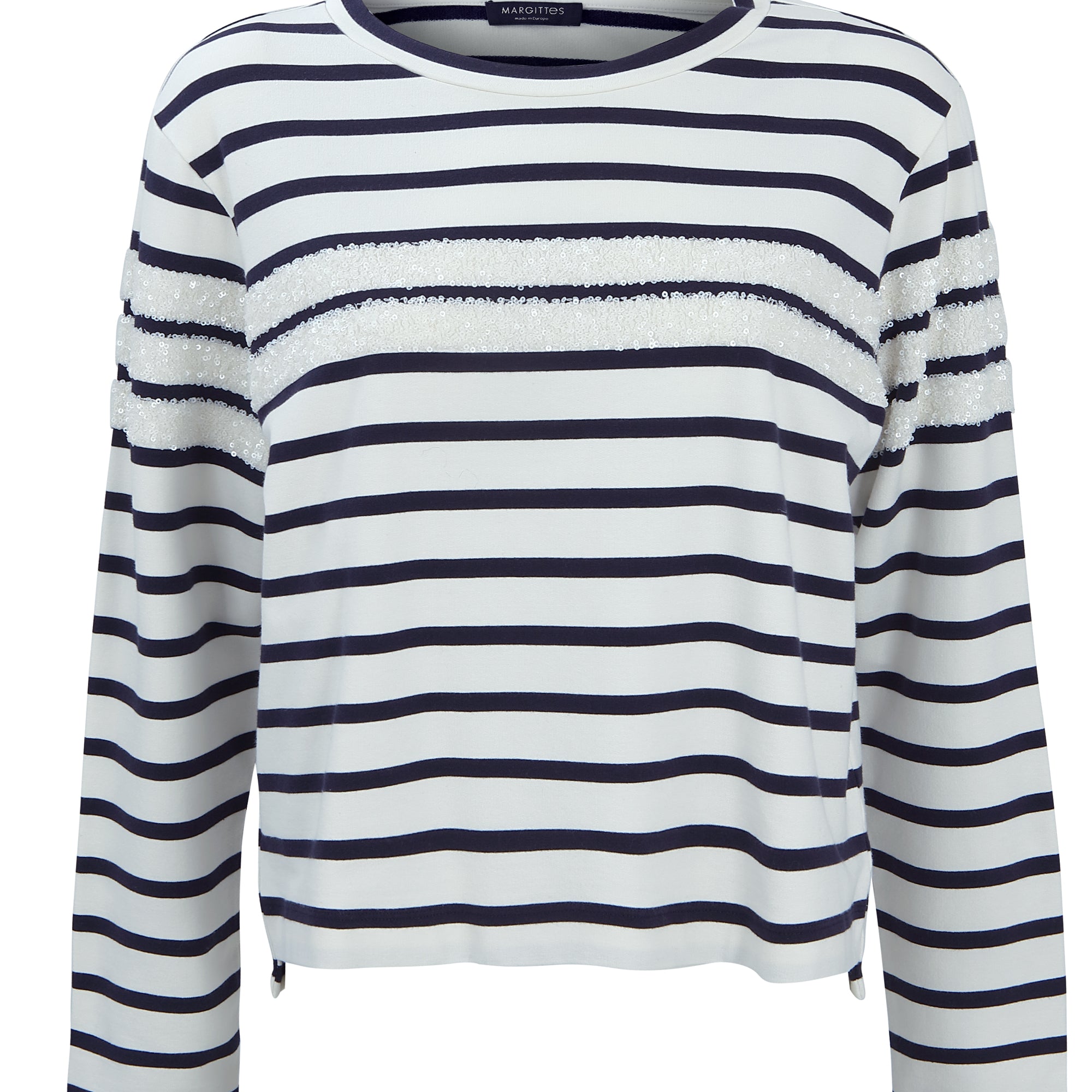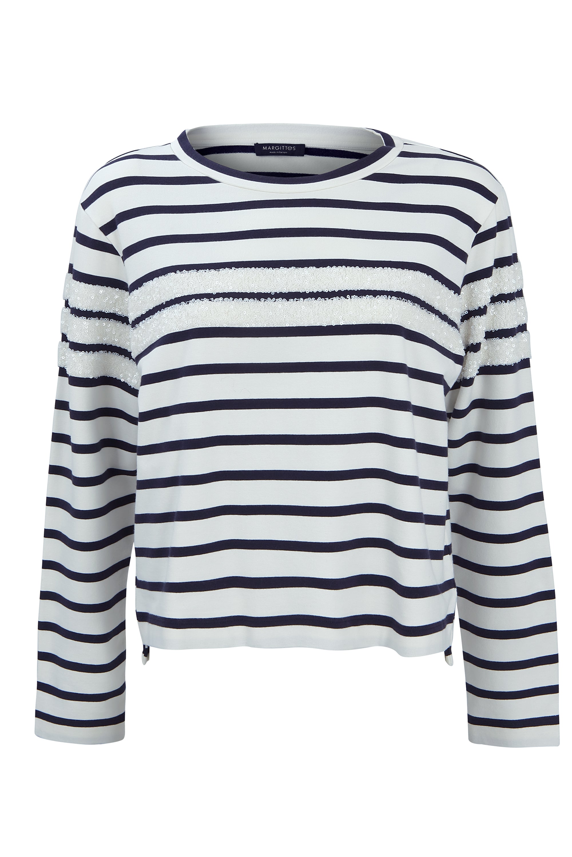 Margittes Off White and Marine Stripe Sweater with Sequins