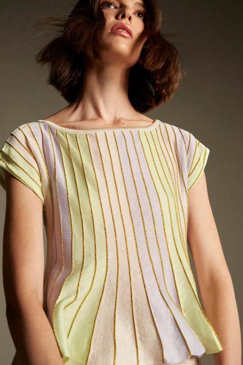 Maria Pavan Cap Sleeve Striped Metallic Knit Top