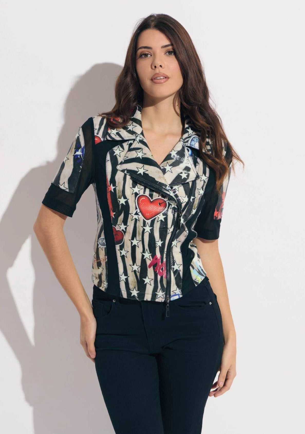 Oo La La Short Sleeve Hearts and Stars Nylon Mesh Moto Jacket