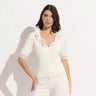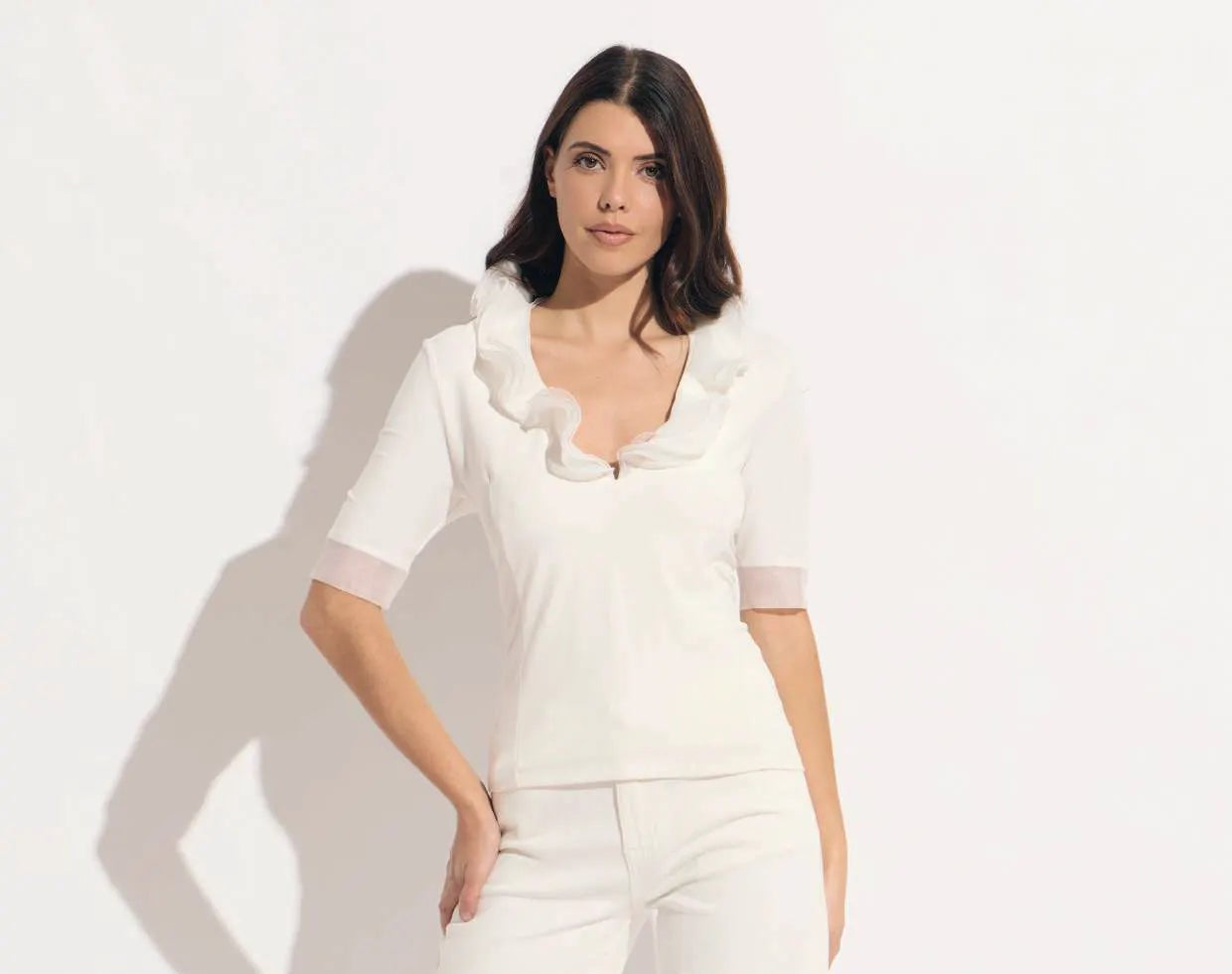 Oo La La V-Neck Jersey Top with Organza Ruffle Collar and Cuff