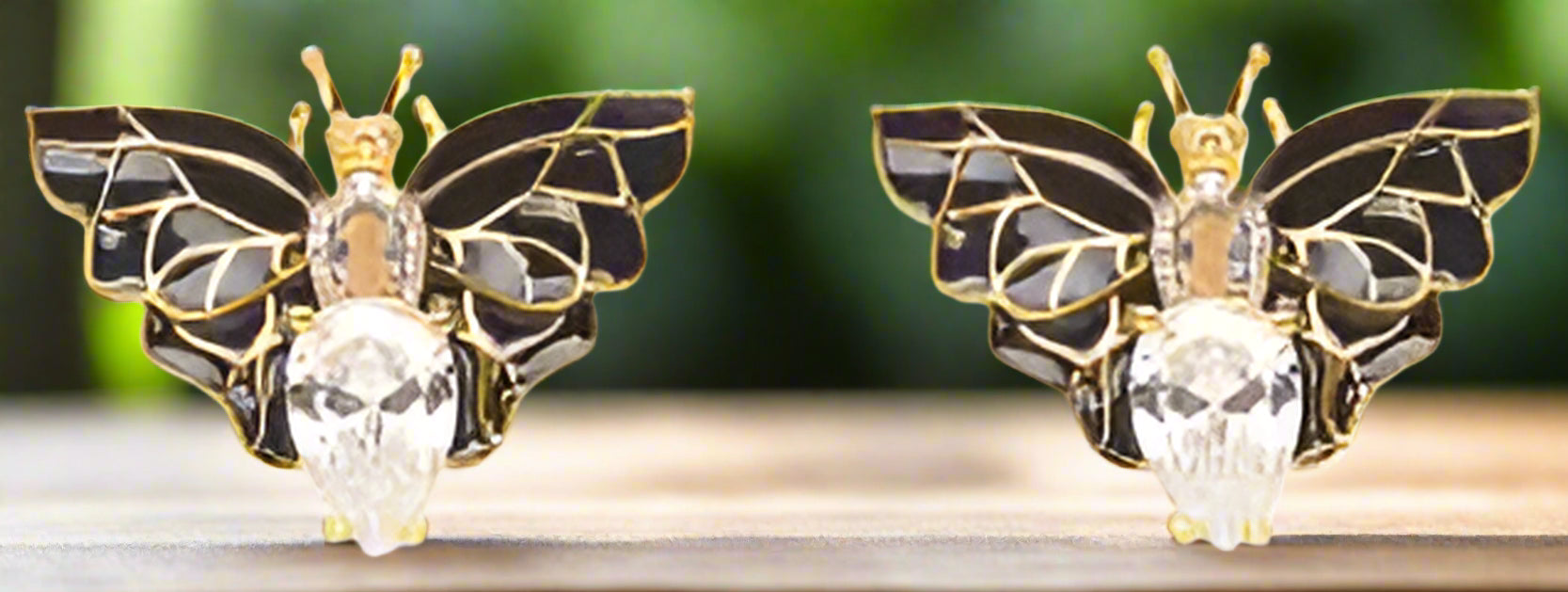 - Earrings in sterling silver 900 and 24k gold plated bronze with onyx crystals inlaid.