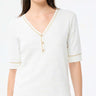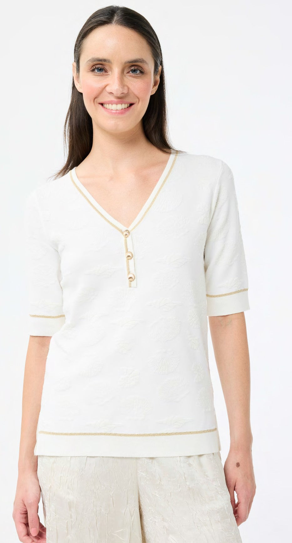 Off White and Gold V-Neck Button Front shell jacquard Sweater