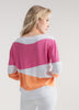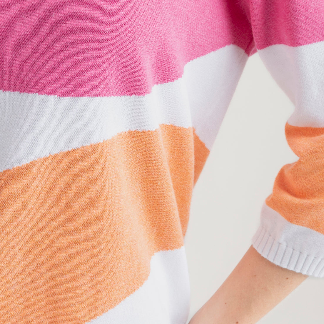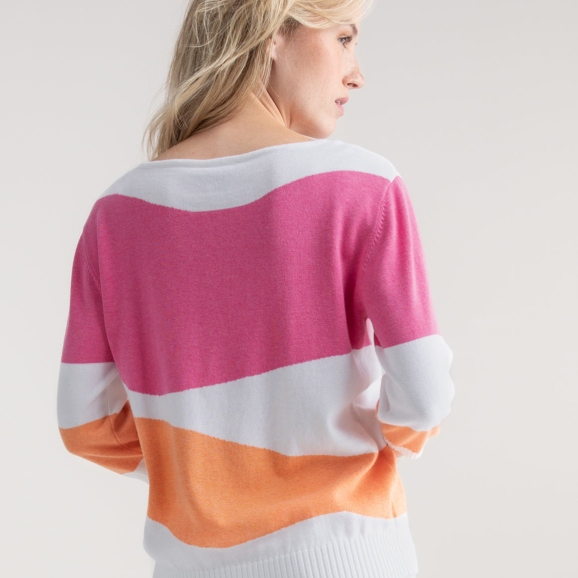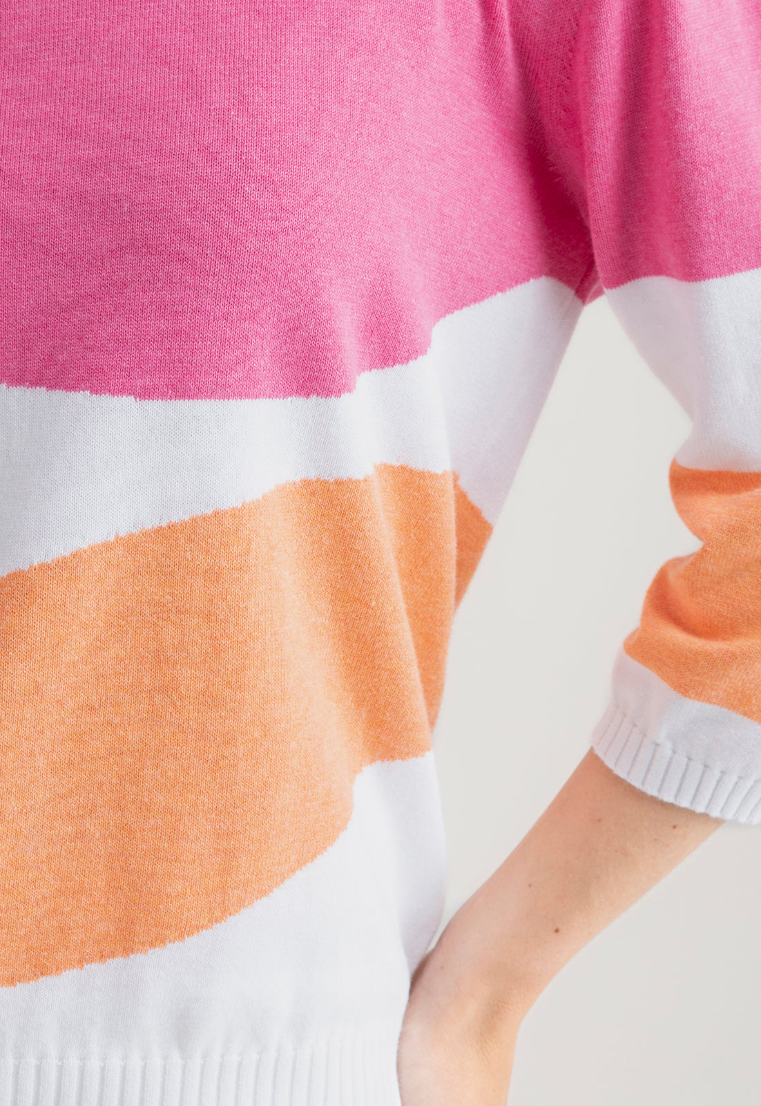 Relaxed Fit Boatneck 3/4 Sleeve Abstract Wave Print Sweater in 100% Cotton