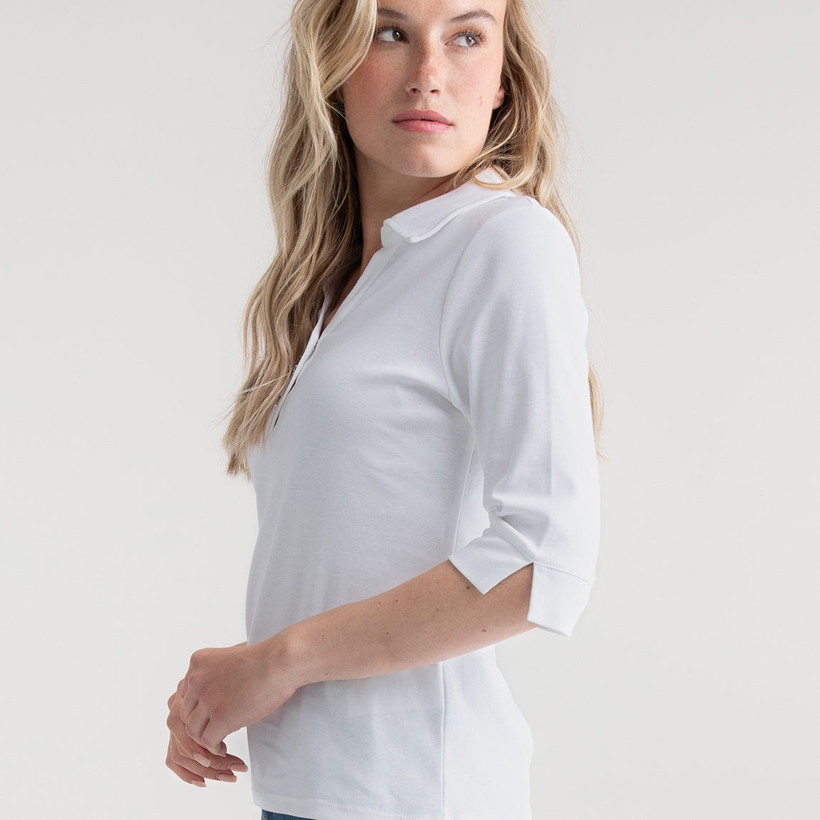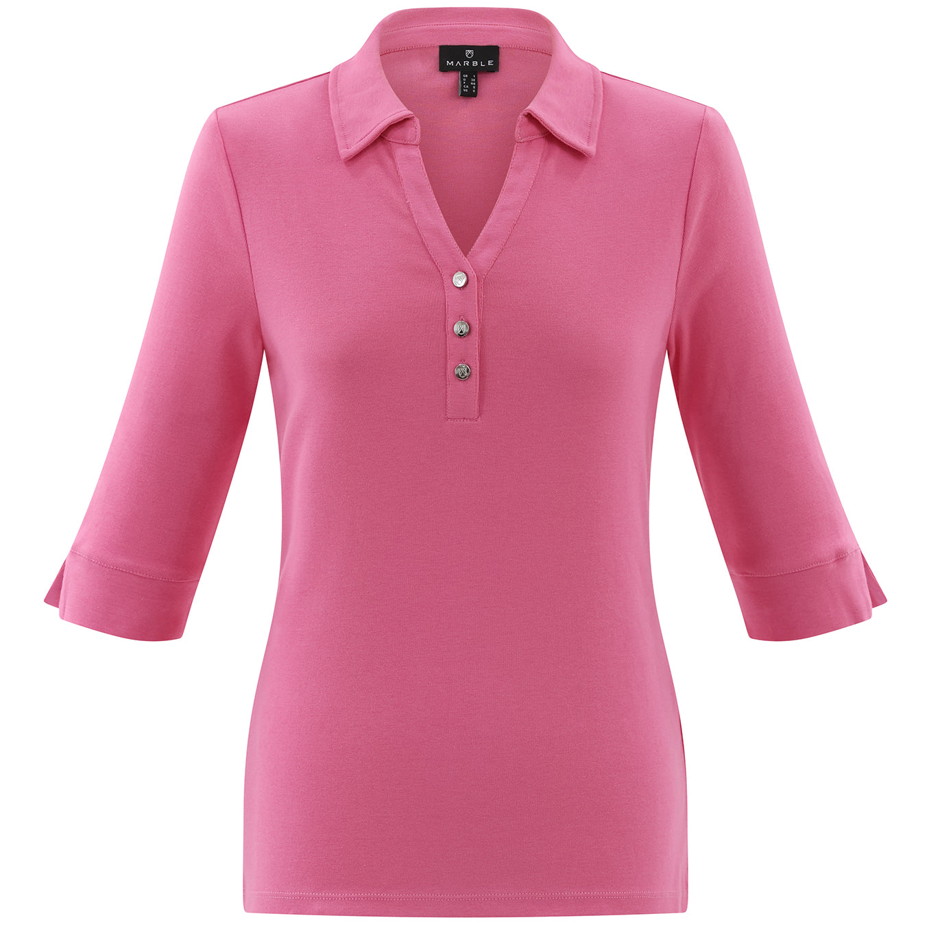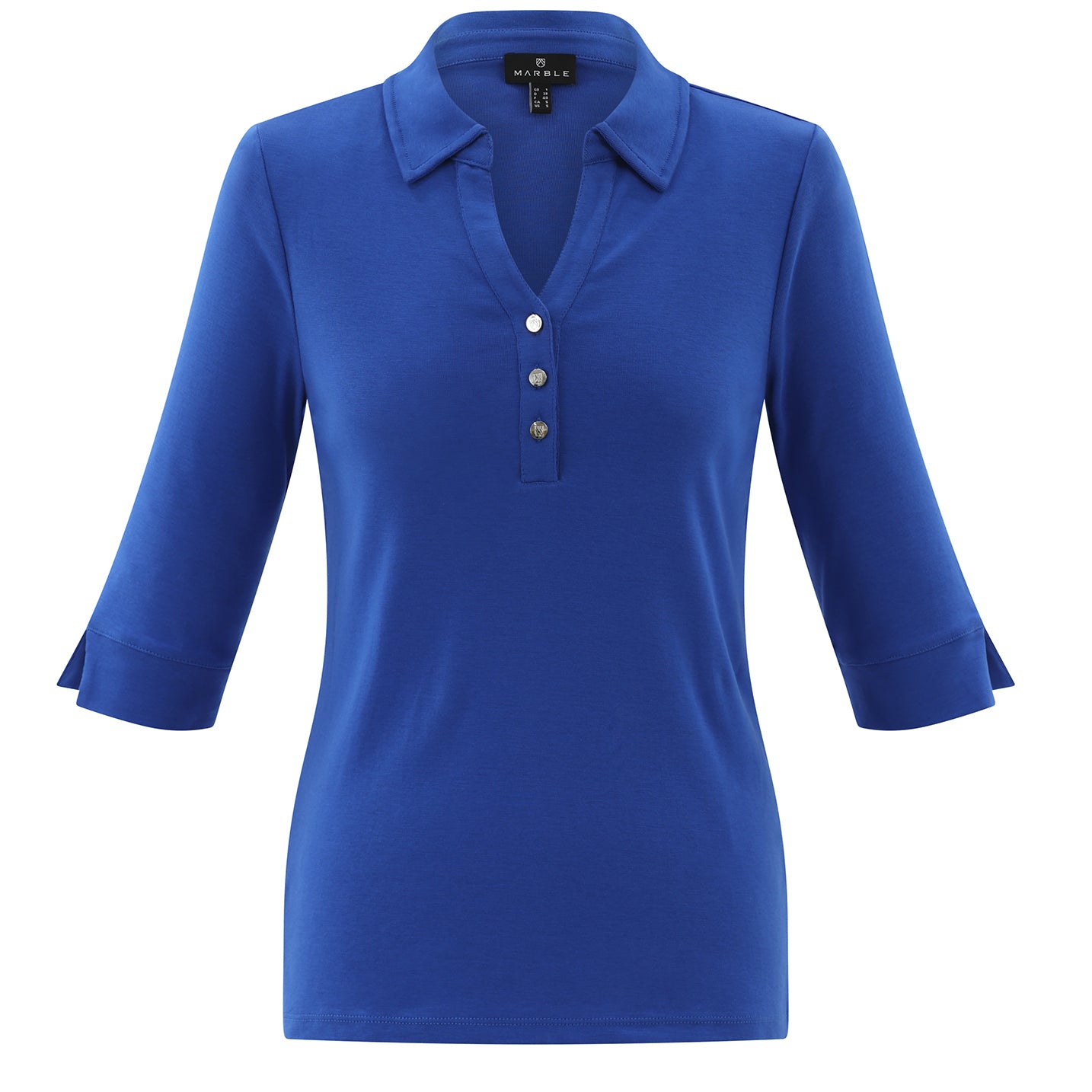 100% Cotton Solid 3/4 Sleeve Polo Top