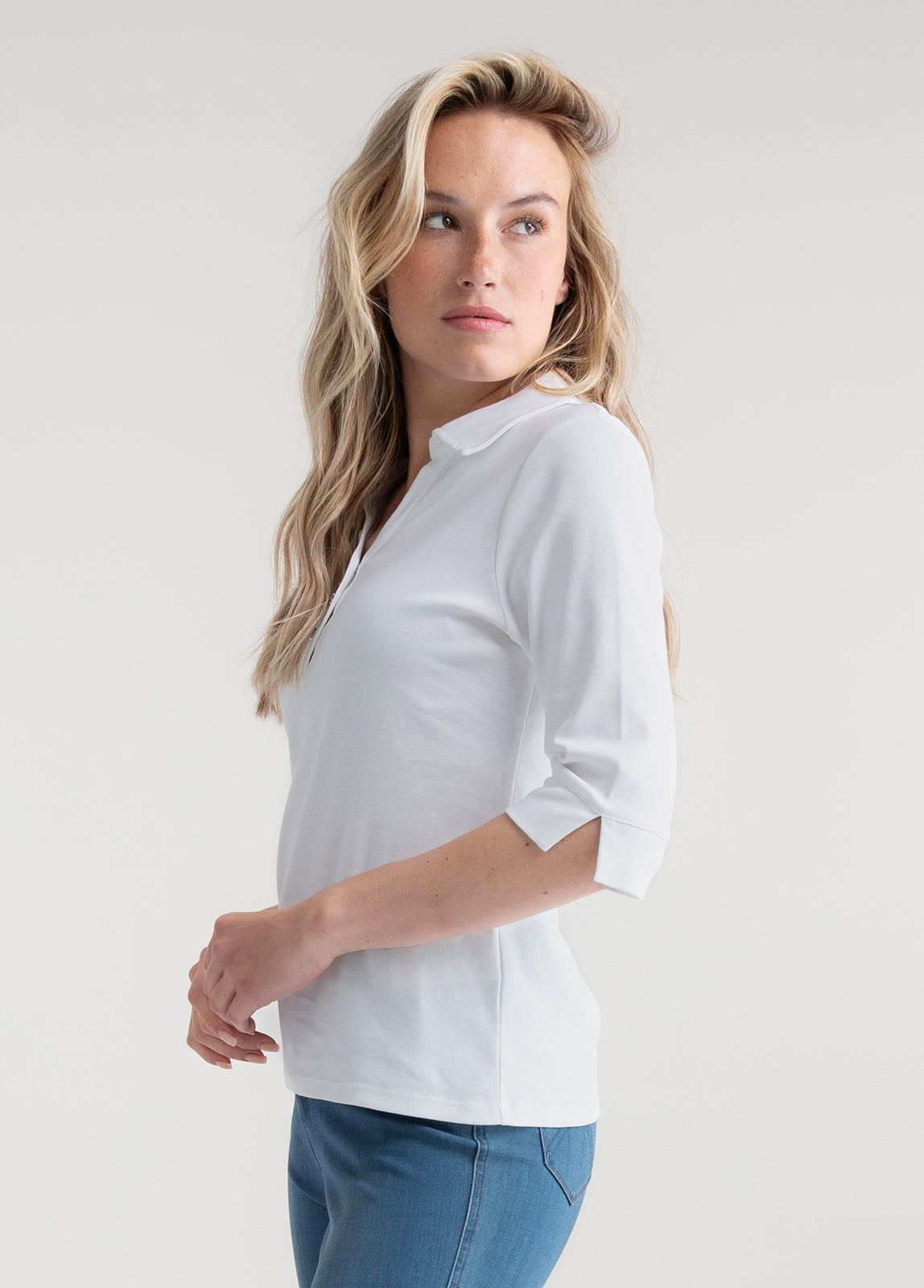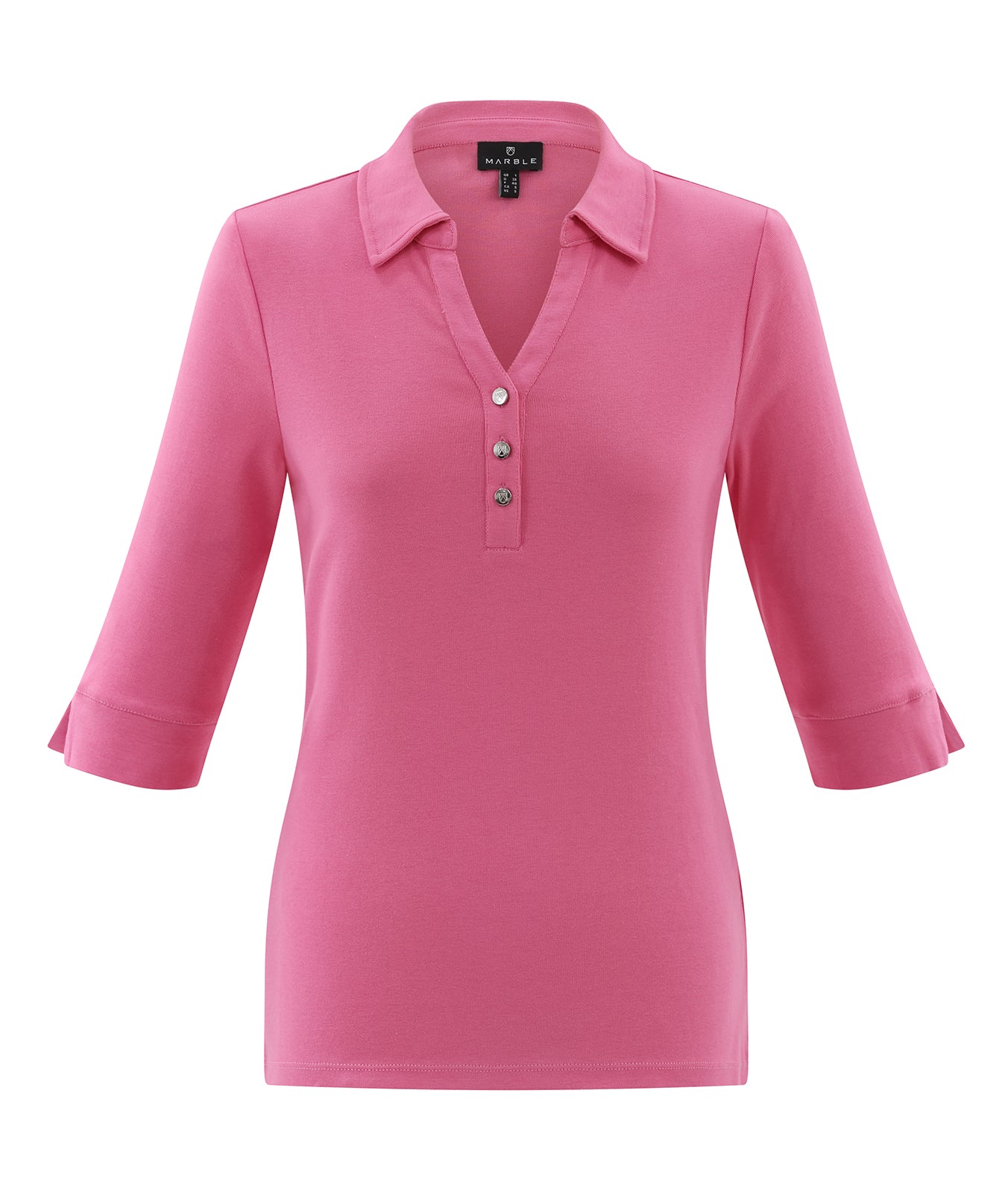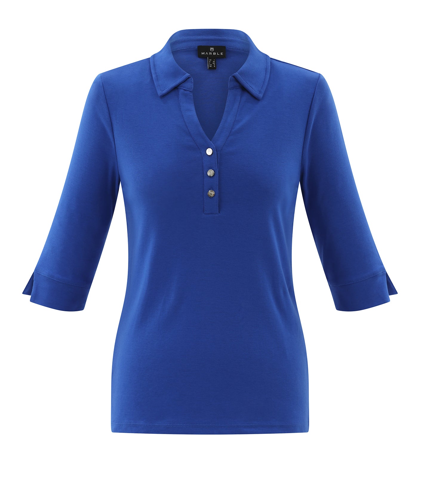 100% Cotton Solid 3/4 Sleeve Polo Top