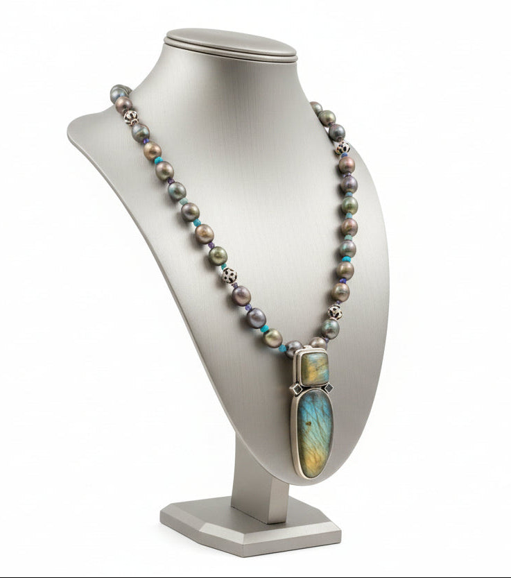 Amy Kahn Russell Labradorite Stone Necklace Pendant/ Pin
