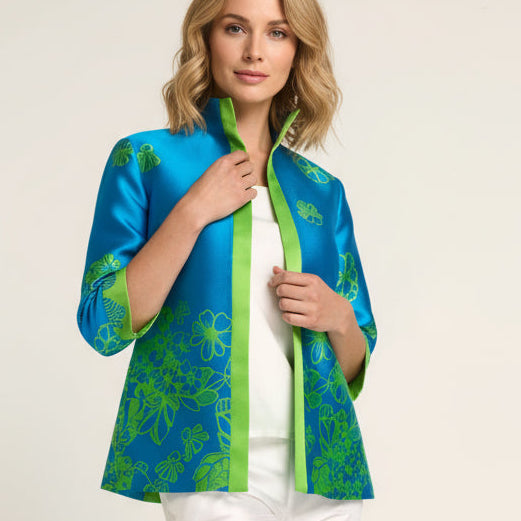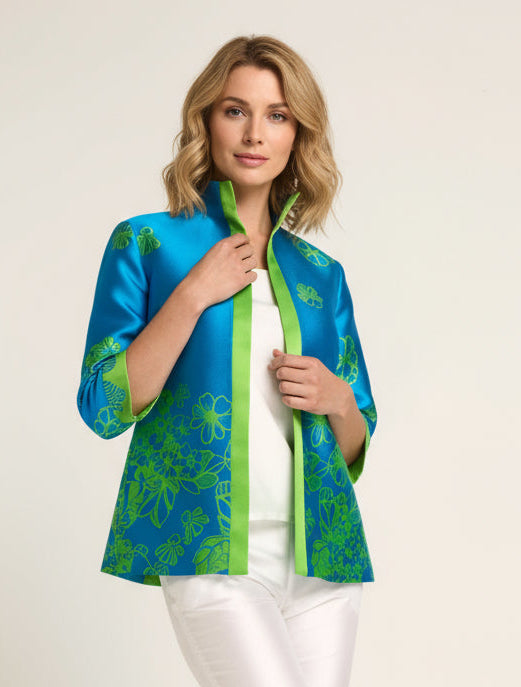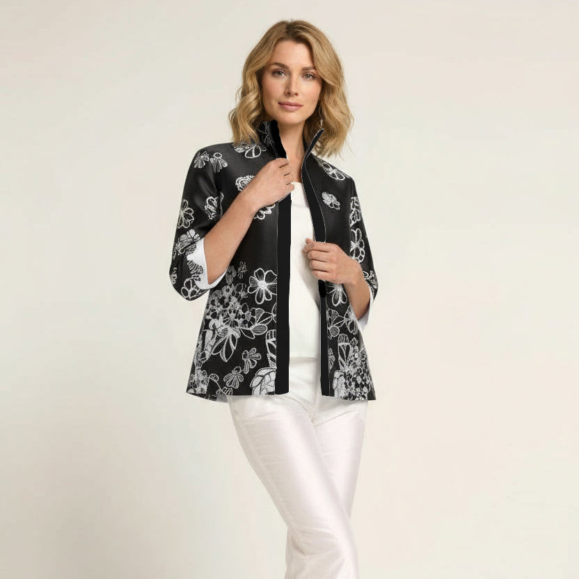 Emmelle Graphic Floral Jacquard Open Front High Neck Jacket