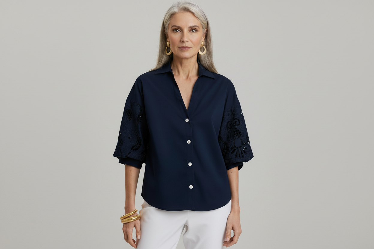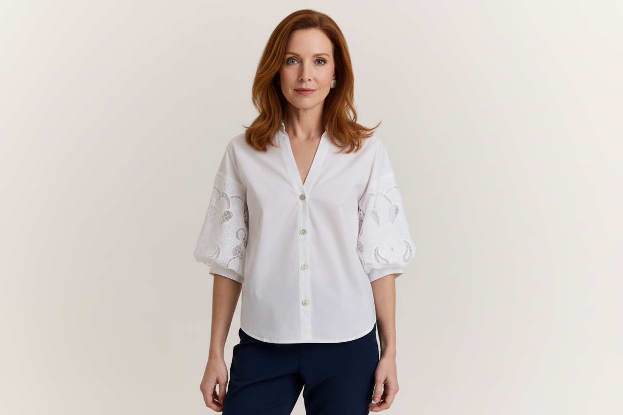 Hinson Wu Lilian Elbow Balloon Sleeve Eyelet Embroidery Blouse