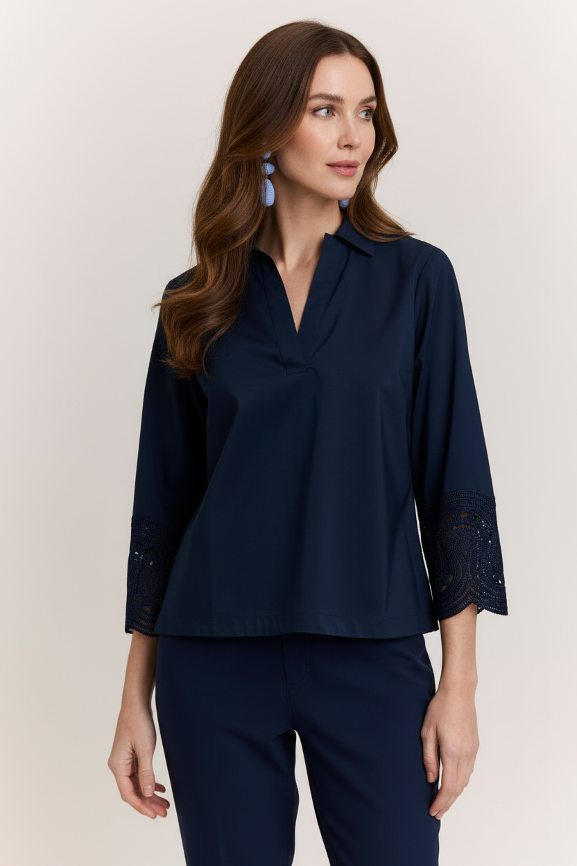 Hinson Wu Mona Bracelet Sleeve Embroidered Popover Blouse